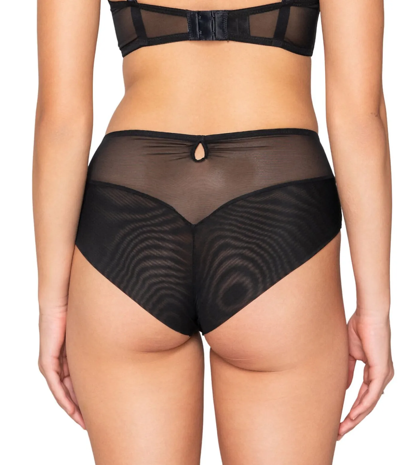 Dit elegante, sensuele en verfijnde stuk vrouwelijke lingerie met hoge taille bedekt op subtiele wijze de onderbuik en laat het figuur verfijnd uitkomen. De voorkant is gemaakt van transparante tule met bloemen en geometrische borduursels voor een zeer geraffineerd effect. De zijkanten en achterkant zijn in effen, licht doorschijnende voile, wat een vleugje sensualiteit en lichtheid toevoegt. De hoge taille, met zijn zachte, naadloze afwerking, biedt meer comfort en een gladder silhouet. Het katoenen kruisje zorgt de hele dag voor hygiëne en comfort.