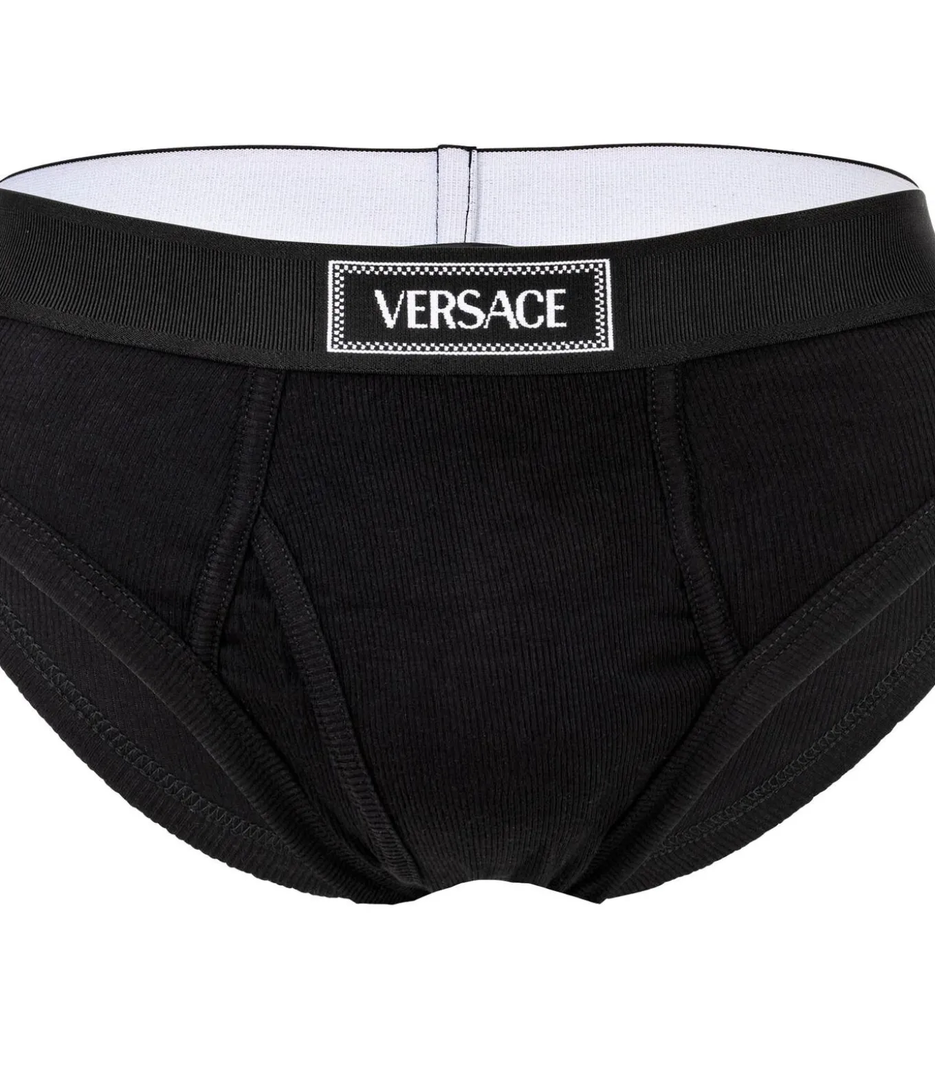 Geribbelde herenslip van het merk VERSACE. Hoogwaardige broek van elastische katoenen jersey. Geweven elastische tailleband met geïntegreerd logo–opschrift.