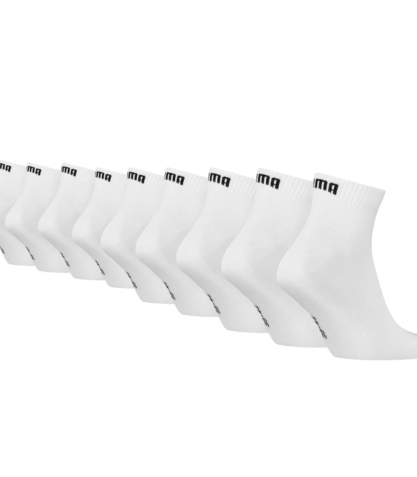 PUMA unisex kwart sokken in een praktisch 9–pack. Effen basissokken met het kenmerkende merklogo en platte teennaden. Perfect voor dagelijks gebruik.