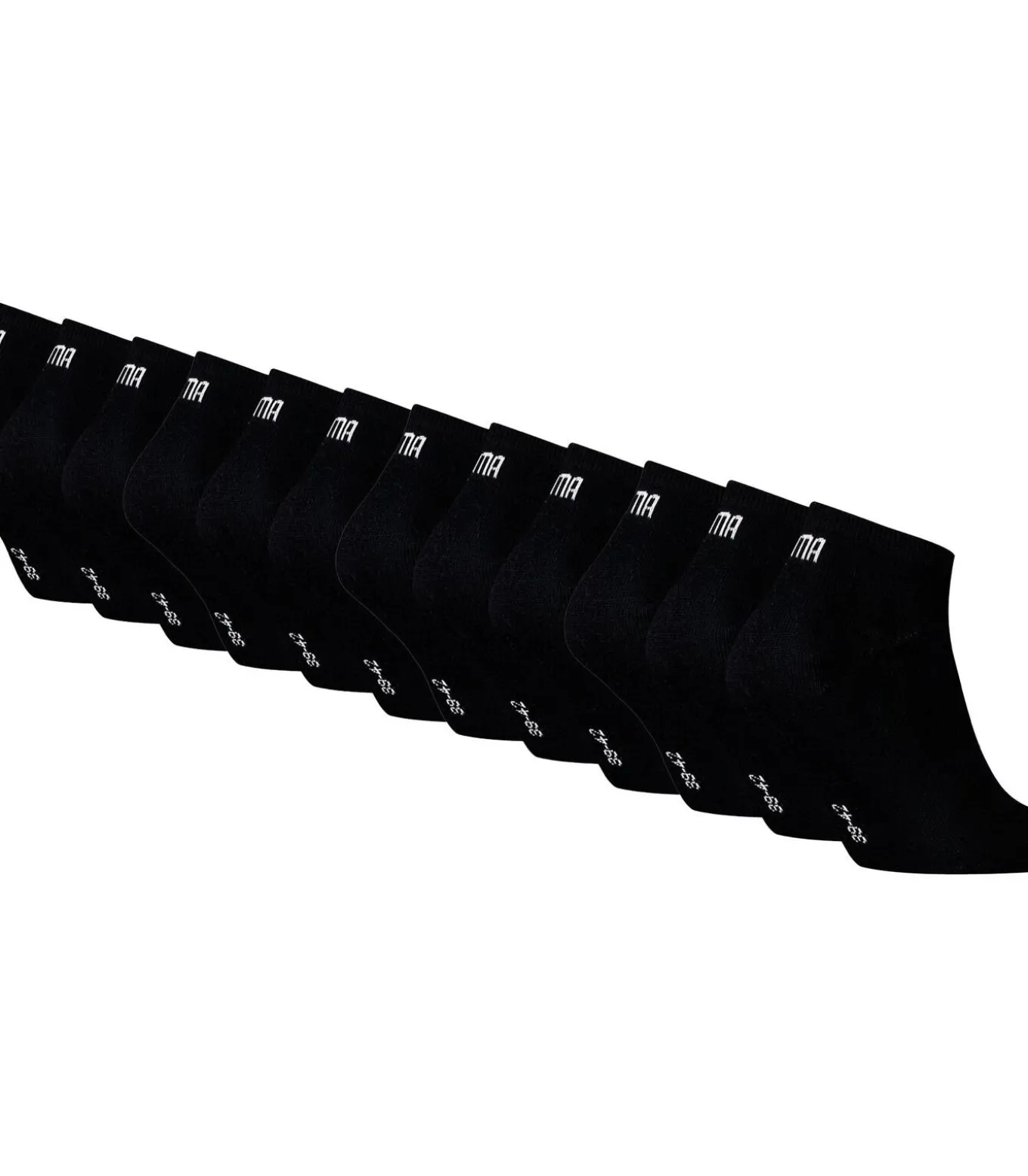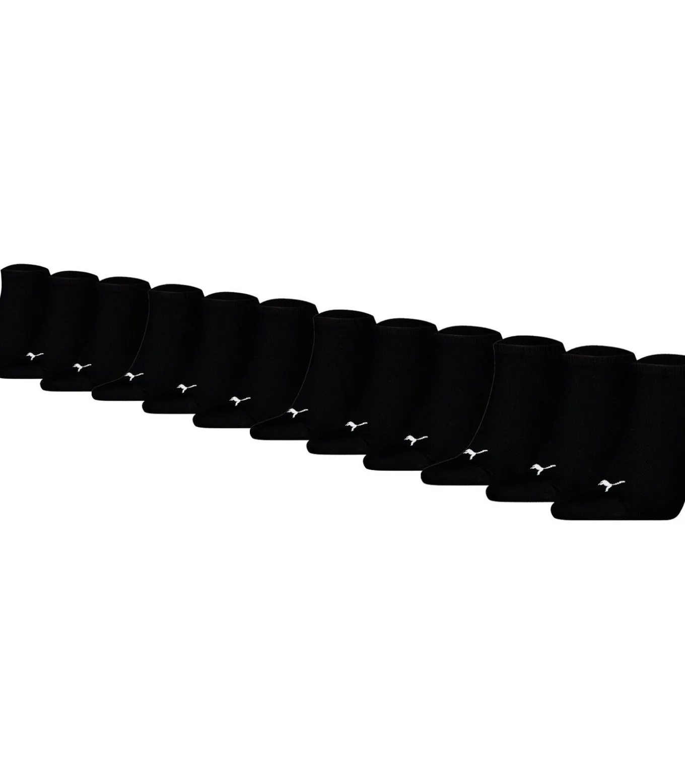PUMA unisex sneakersokken in een praktische verpakking van 12 stuks. Effen basissokken met het kenmerkende merklogo en platte teennaden.