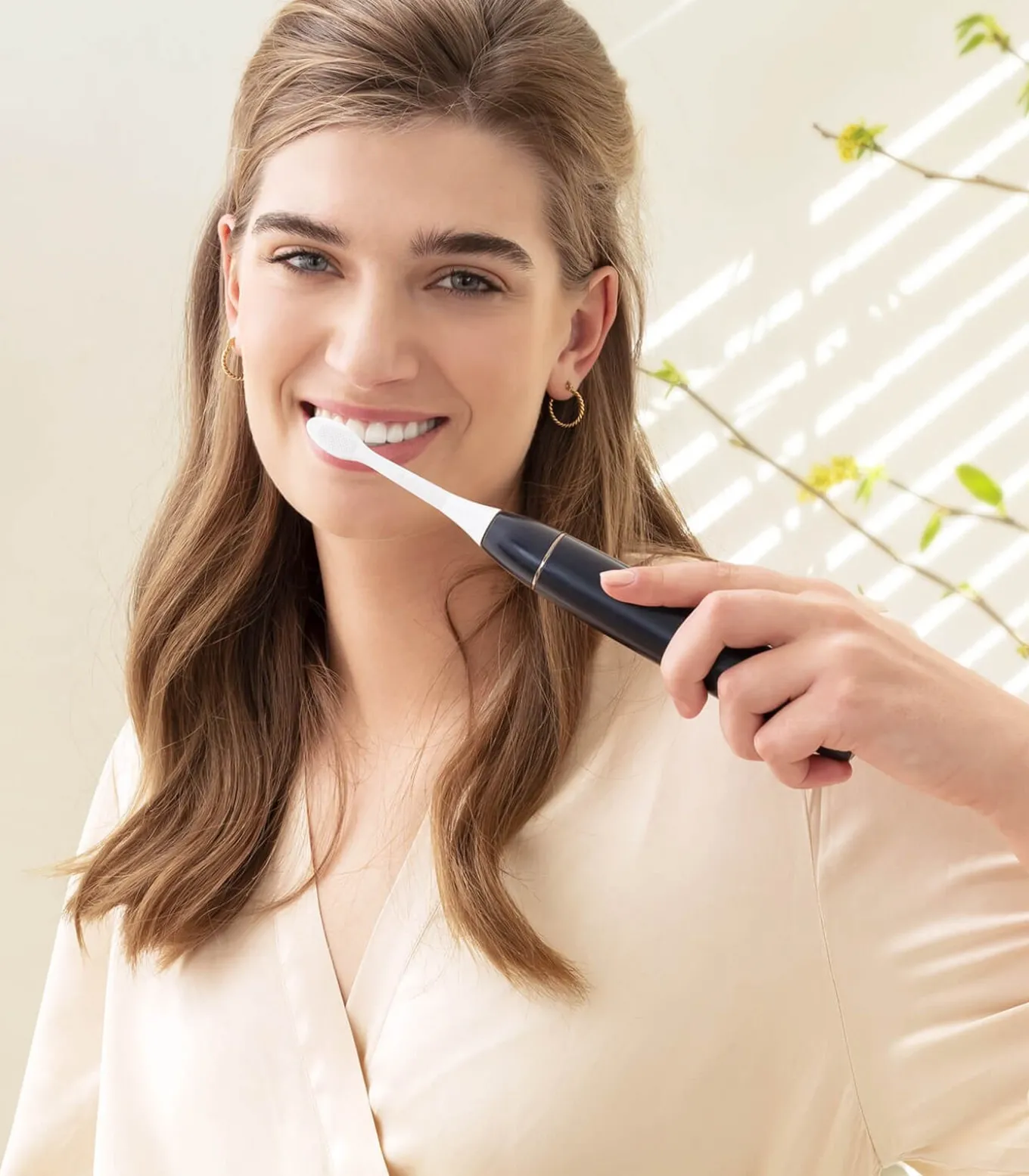 De SonicYou kan moeilijk bereikbare plaatsen reinigen en reinigt tot diep tussen de tanden. Met zijn sonische vibratietechnologie pakt het tandplak en onzuiverheden effectiever aan dan een handtandenborstel voor een stralende lach. Deze handige bundel bevat een donkerblauwe SonicYou en 4 navullingen voor de Silk’n medium opzetborstel om uw glimlach nog langer stralend te houden.
