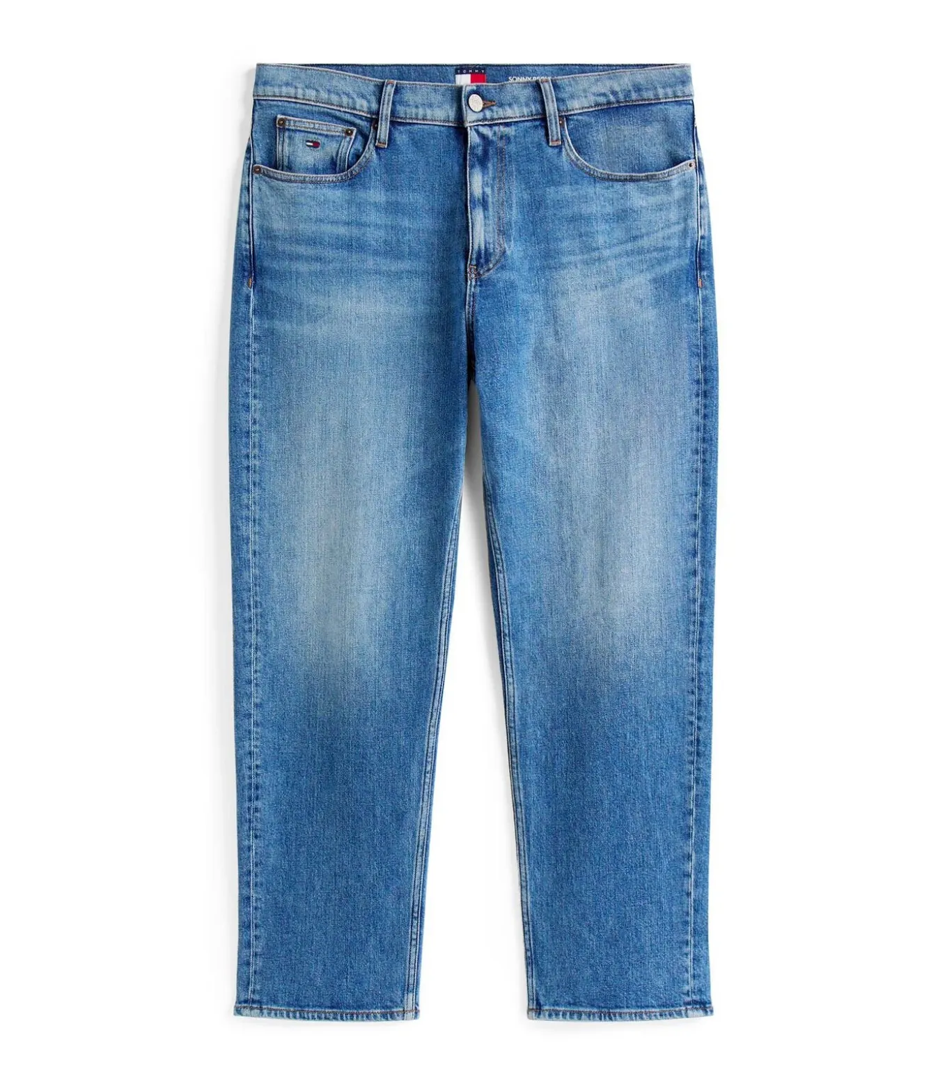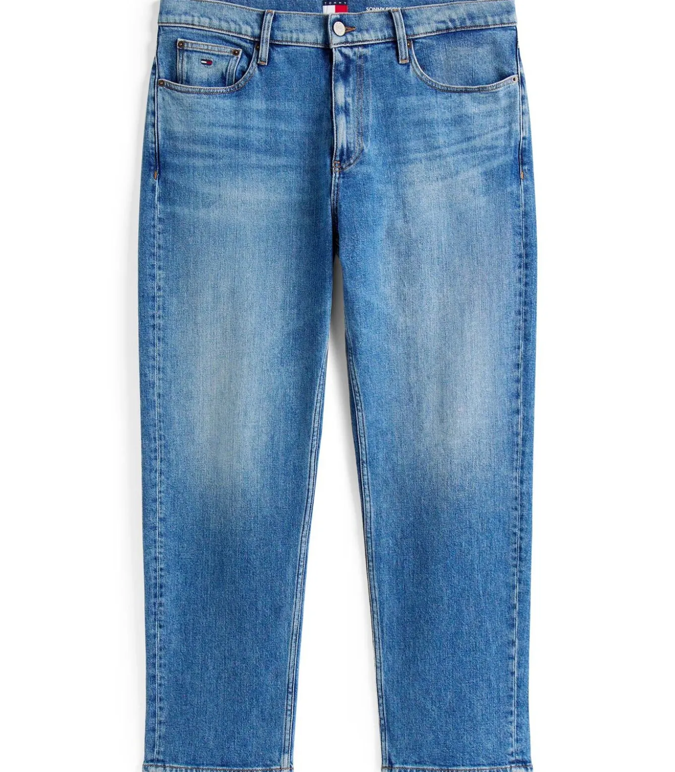 Kleur: Denim Medium. Samenstelling: 60% regeneratief katoen, 30% gerecycled katoen, 1% elastaan. Pasvorm: Regular Tapered. Sluiting: Gulp met rits en knoop. Details: Denim in medium wash, five–pocket–model, leren Tommy Jeans–logopatch op de achterkant, geborduurde vlag op de zak. Duurzaamheid: Gemaakt van regeneratief en gerecycled katoen. Gebruik: Perfect voor praktische en casual kleding, ideaal voor vrije tijd en dagelijkse looks.