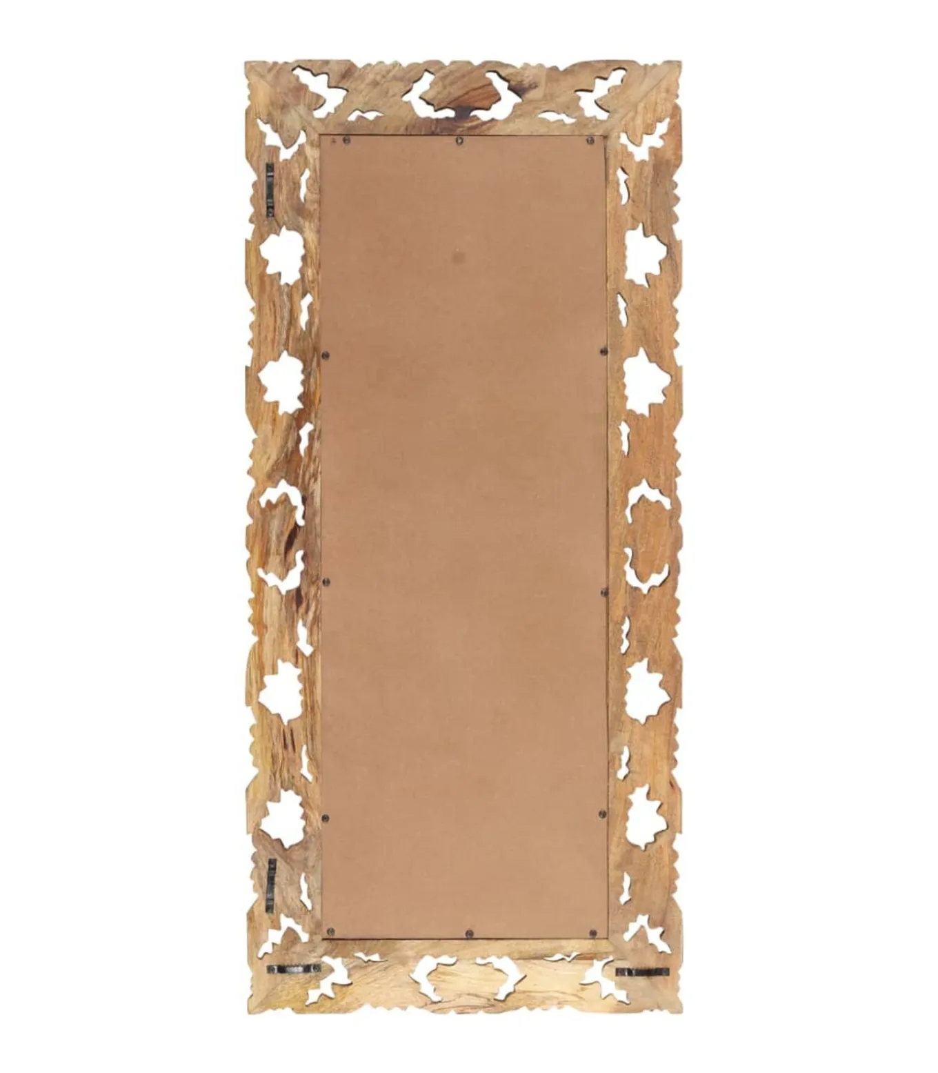 Massief mangohout is een tropisch hardhout. Het heeft de kracht om veel gewicht te dragen en is bestand tegen slijtage. Bovendien zorgen het voortreffelijke vakmanschap en de prachtige houtnerven ervoor dat elke houten spiegel net iets anders is dan de rest. Het met de hand gesneden patroon draagt bij aan de schoonheid.