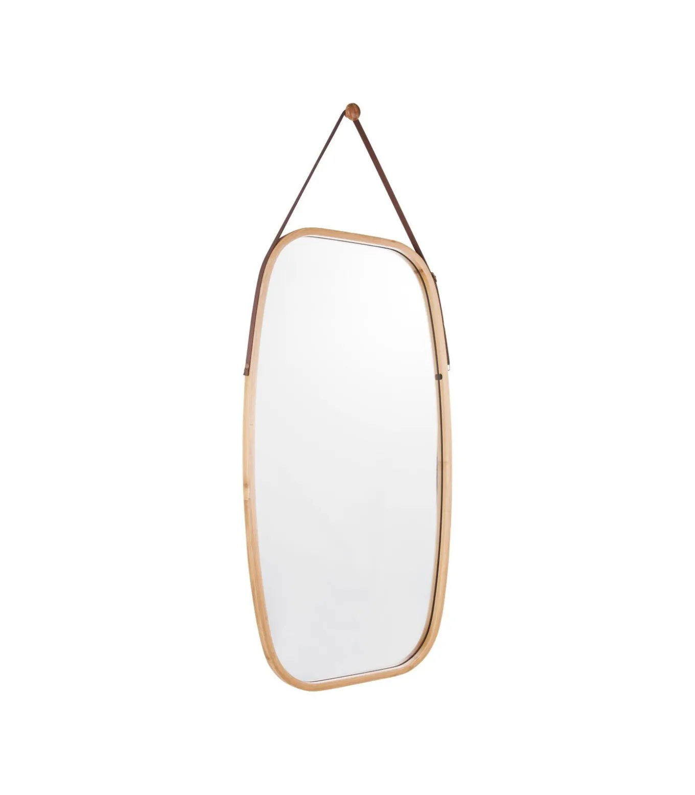 Spiegeltje, spiegeltje aan de wand, wie is de mooiste van het land? Dat is spiegel Idyllic van Pt,! Deze spiegel heeft een lijst van bamboe en kan worden ophangen aan de muur met behulp van de meegeleverde haak en het leer look koord. Een pareltje aan de wand in de badkamer, slaapkamer, hal of woonkamer. De moderne spiegel is een praktisch item waarmee je jezelf nog even kunt bekijken voordat je de deur uit gaat, maar de spiegel is ook in staat de ruimte groter te laten lijken.
