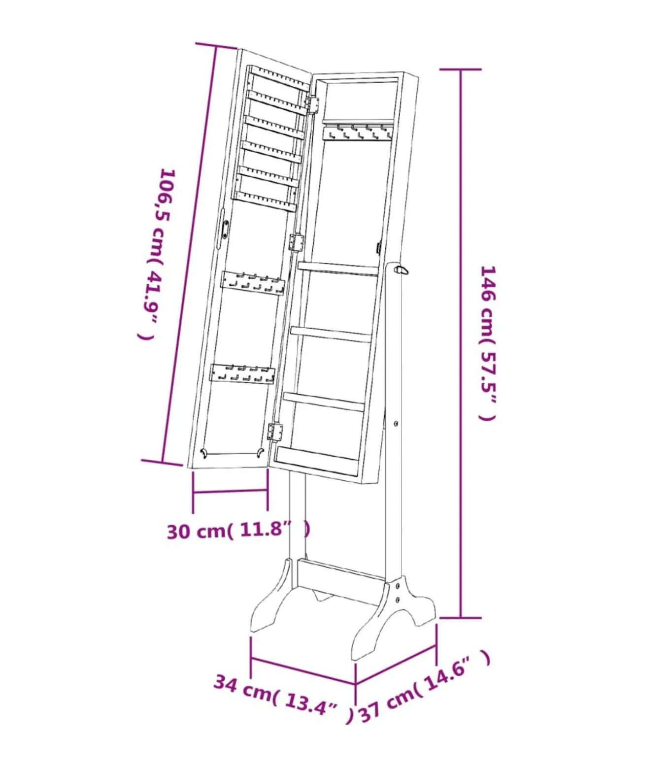 Totale afmetingen: 34 x 37 x 146 cm (B x D x H)
