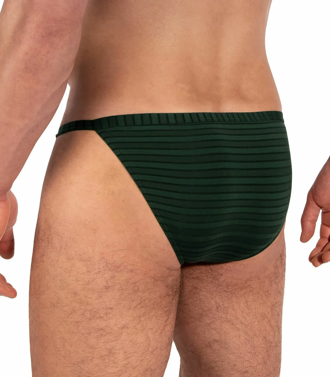 Mini ‘rio tanga’ snit met een hoog dijbeen. Aangenaam lichte polyamide stof met schaduwstrepen voor optimaal draagcomfort. Deze heerlijk soepele microvezel is extreem licht en zacht tegen de huid. De ademende stof zorgt voor een zeer aangenaam draaggevoel en garandeert die heerlijk ontspannen look. De genuanceerde gebreide strepen zorgen voor een strakke, mannelijke structuur. De gebruikte fijne jersey wordt in Italië geproduceerd volgens de Oeko–Tex–100 norm en genaaid in de fabrieken van Premium Bodywear in Duitsland.