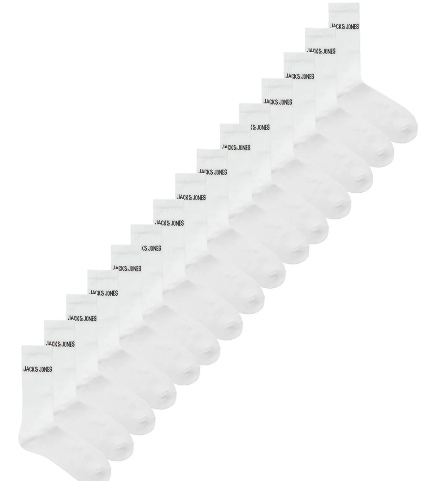 Deze set van 15 paar witte crew sokken in maat 41/46 is perfect voor de sportieve man die op zoek is naar comfort en functionaliteit. De sokken zijn gemaakt van hoogwaardig katoen met vochtafvoerende technologie, waardoor je voeten droog en fris blijven tijdens het sporten. De sokken hebben een versterkte hiel en teen voor extra duurzaamheid en optimale ondersteuning.**De voordelen van de Jack & Jones JACREGEN sportsokken:**