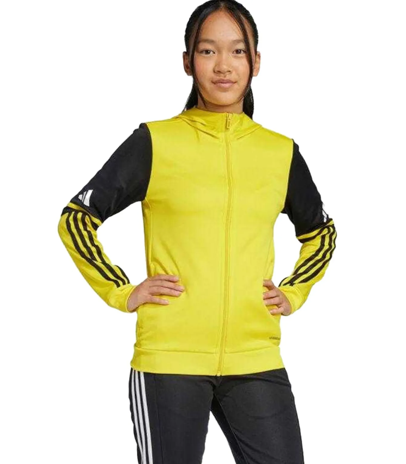 Adidas SQUADRA 25– Zwarte trui met volledige ritssluiting is gemaakt van 100% recycled polyester. Deze truitje heeft een contrast, logo en streepjesdetailsontwerp, versterkt door de Aeroready en waterafstotende stoftechnologie. De ribbenhem toont een snugge fit, terwijl de kap aanneembaar is met een kapiteinshalslijn en lange mouwen. Ook zijn de manchetten ribbelverstevigd. Het truitje is geschikt voor reguliere gebruik en heeft twee zakken. De volledige ritssluiting zorgt ervoor dat het truitje optimaal aan je pasbehoort. Bij de grootte vindt u: 6–7 jaar – 25 in, 8–9 jaar – 28 in, 10–11 jaar – 30,5 in, 12–13 jaar – 34 in en 14–15 jaar – 36 in.