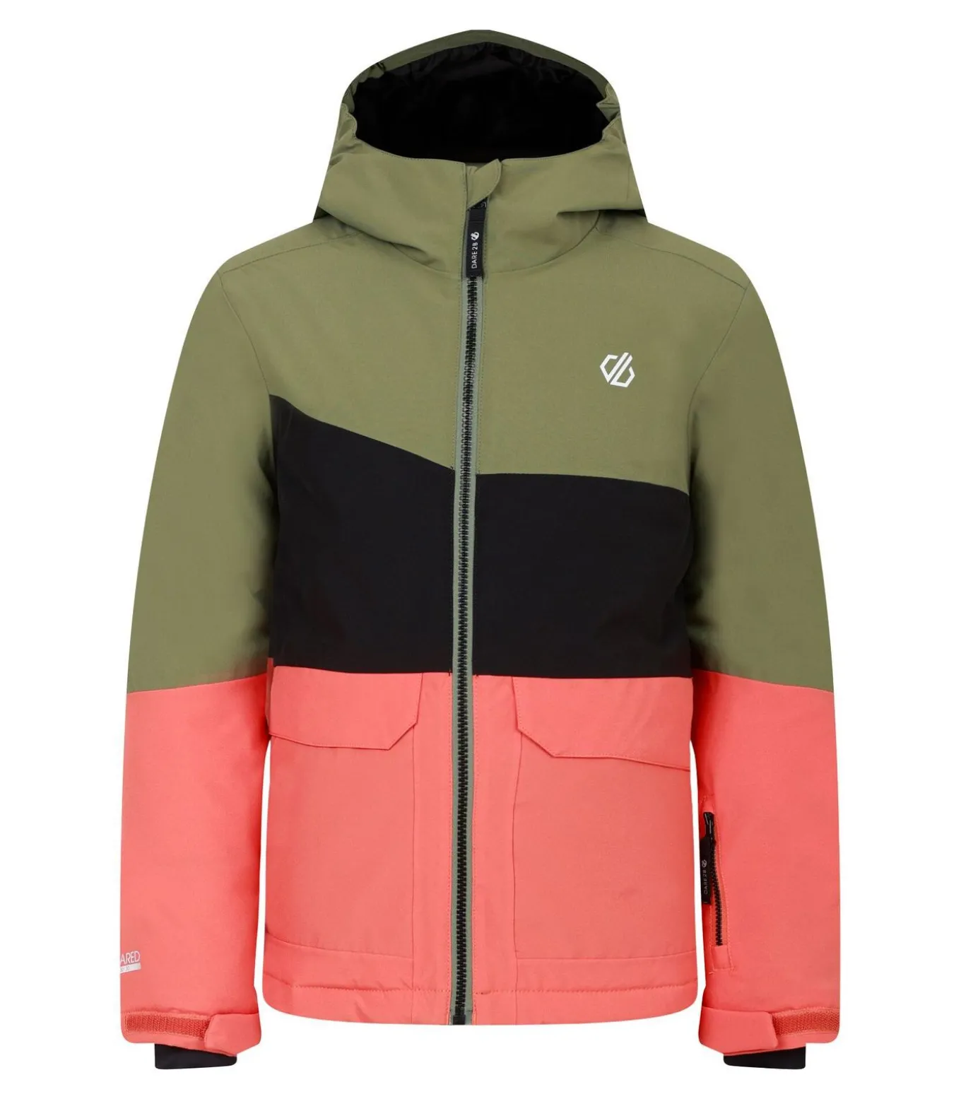 Dare 2B STEAZY II Jasje Oliegroen beschikt over een aantal duurzame materialen en technologieën om uw comfort en prestaties te verbeteren. De vulling en het linnen zijn gerecycleerd, terwijl de design–elementen, zoals contrastpaneel en logo, zijn toegevoegd voor een moderne en stijlevolle look. De stoftechnologie ARED 30/30 zorgt voor ademendheid, isolatie, duurzaamheid, en is PFC, PFOA, en PFOS vrij. Deze technologie biedt ook stretch, waterafstotendheid, en waterdichtheid. De manchetten zijn verschuifbaar, terwijl de mouwen lang zijn om u meer flexibiliteit te geven bij het skiën of snowboarden. De halslijn is in de vorm van een kapitein, terwijl er ook geïntegreerde sneeuwrokken aanwezig zijn, met reflecterende details en getapet naden voor extra veiligheid. De kappen hebben een opgegroeide kap en zijn gedeeltelijk elastisch voor een goede passing. Deze jas bevat ook twee onderzakken, een opbergzak, een mesh–gedekte zak voor de skipas, en een klepsluiting. De jas is vastgezet met volledige ritssluiting. De jas komt in verschillende maten: 3–4 jaar: 22,5 inch, 9–10 jaar: 28,5 inch, 11–12 jaar: 31 inch, 13 jaar: 32 inch, 7–8 jaar: 26,5 inch, 14 jaar: 33 inch, 15–16 jaar: 36 inch.