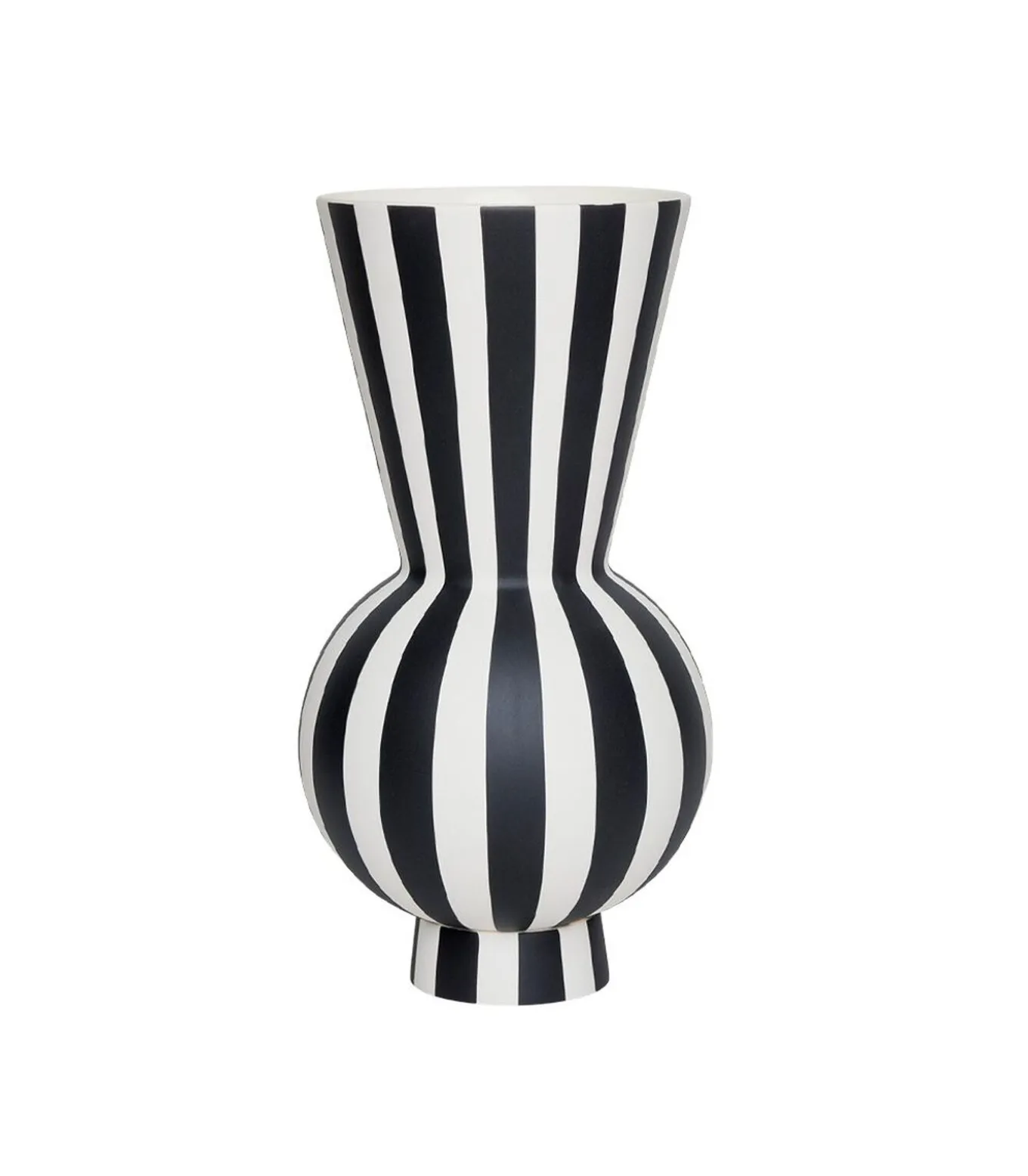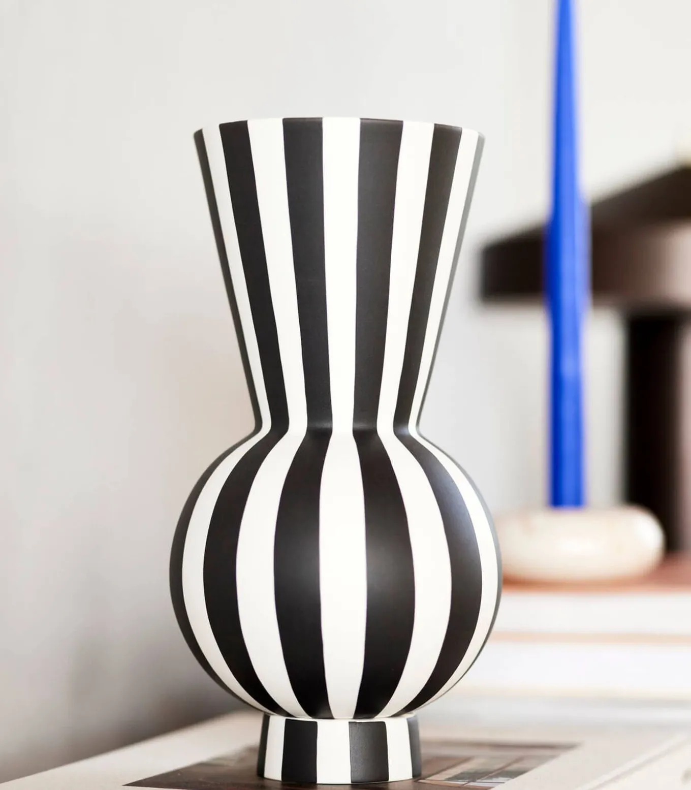 De Toppu ronde vaas is een geliefde toevoeging aan de Toppu familie en een OYOY klassieker. Handgemaakt met precisie, schildert een team van hoogopgeleide vrouwen delicaat elke streep, waarmee ze hun expertise laten zien. Hetzelfde toegewijde team maakt alle Toppu artikelen, zodat je verzekerd bent van consistent vakmanschap. Het doordachte ontwerp van de vaas voegt niet alleen een vleugje elegantie toe, maar zorgt er ook voor dat bloemen mooi staan, waardoor het een perfecte mix is van vorm en functie.