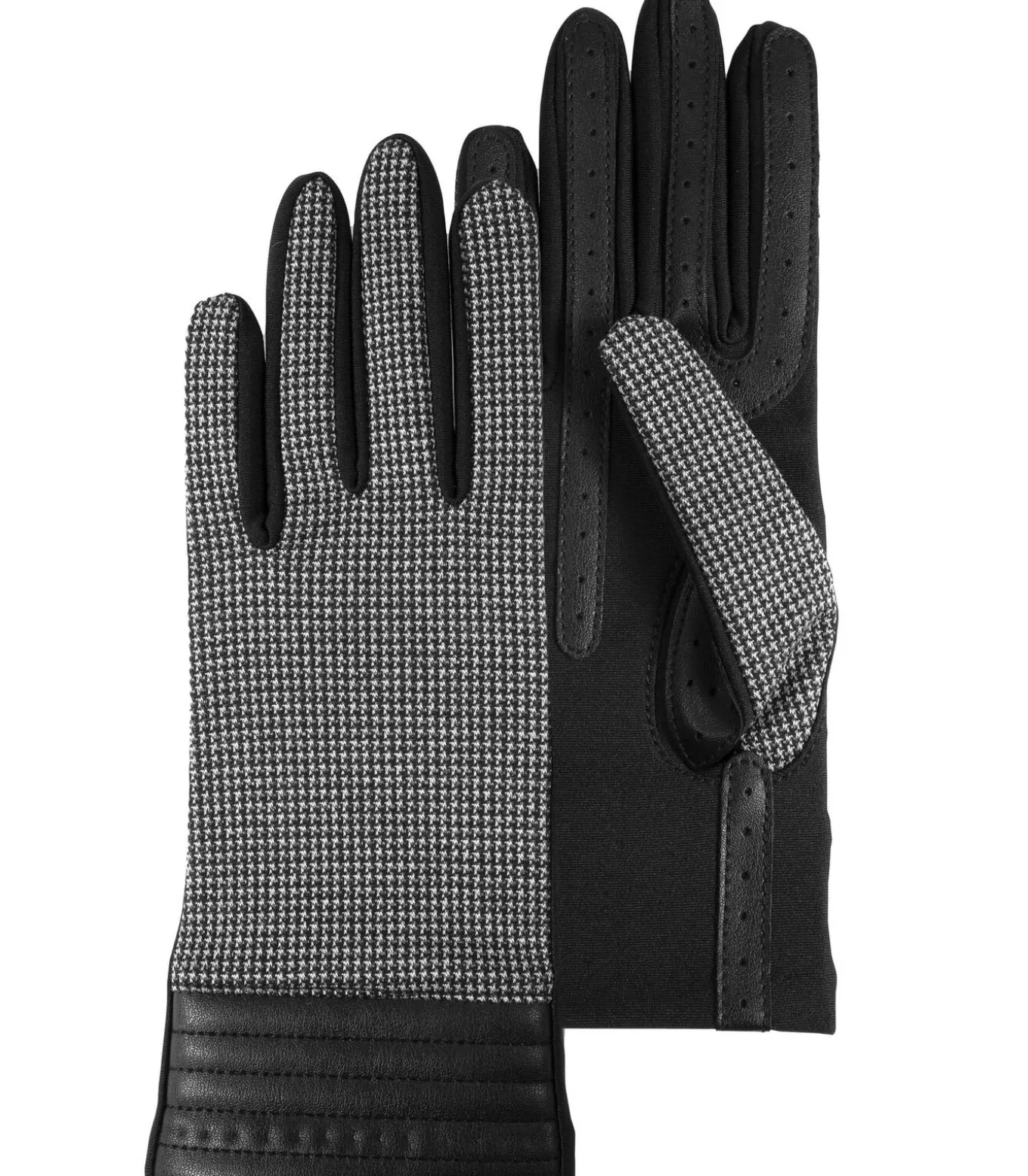 Dit paar handschoenen is je bondgenoot in stijl. Met hun houndstooth–kleuring en manchet van imitatieleer zullen ze de hele winter bij je zijn. Deze ongevoerde handschoenen van stretchstof passen perfect bij alle handen voor maximaal comfort. Dankzij de Isotoner SmarTouch–technologie zijn onze handschoenen compatibel met alle touchscreens. Verkrijgbaar in drie kleuren.