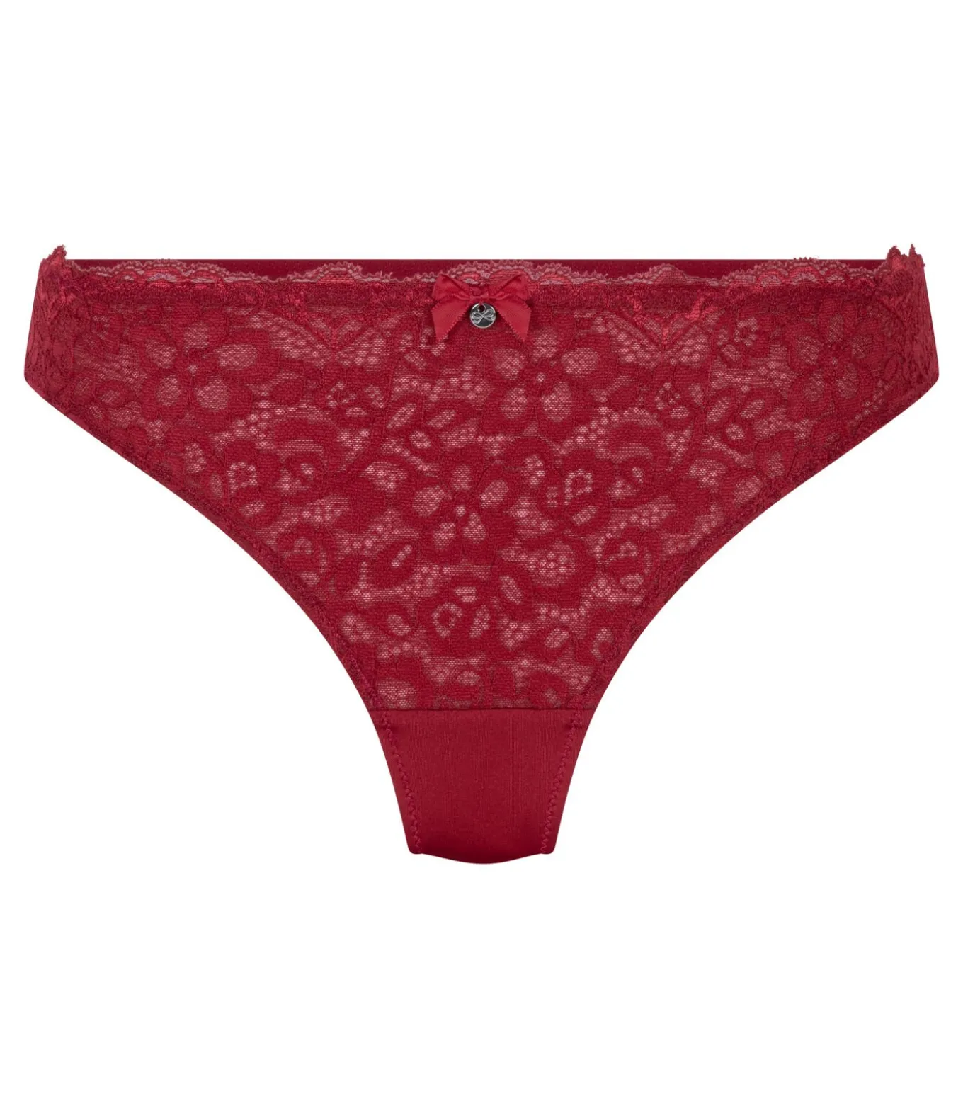 Deze string staat jou super goed! Hij is volledig afgewerkt met kant in een bloemen motief en heeft een strikje in het midden. Combineer met de bijpassende bh voor een complete look.