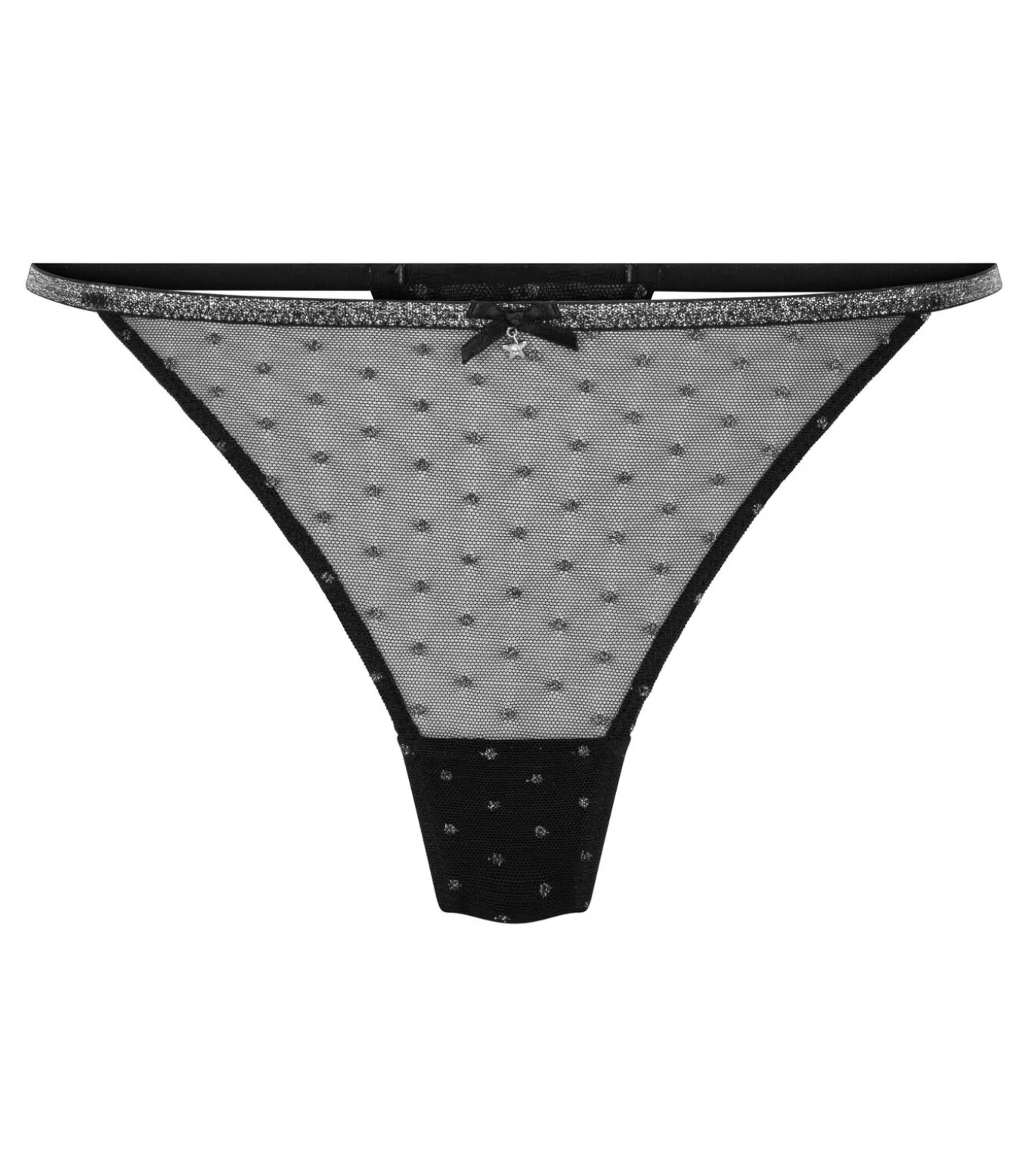 Deze oogverblindende string heeft een gestippeld glitterpatroon dat schittert bij elke stap, plus een strikje met een stervormig bedeltje voor extra glans. De met glitters afgewerkte bandjes zorgen voor een speelse afwerking. Het is het perfecte item als je je stoer, stralend en absoluut onvergetelijk wilt voelen.