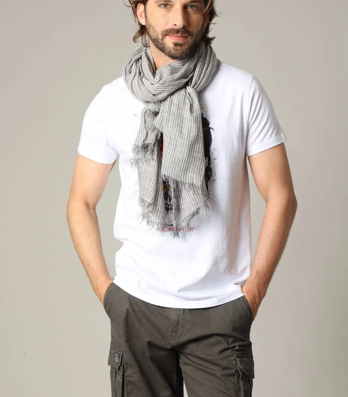 Be the first to review “SUBWAY – Lente – zomersjaal van grijs katoen met fijne witte strepen” Reactie annuleren