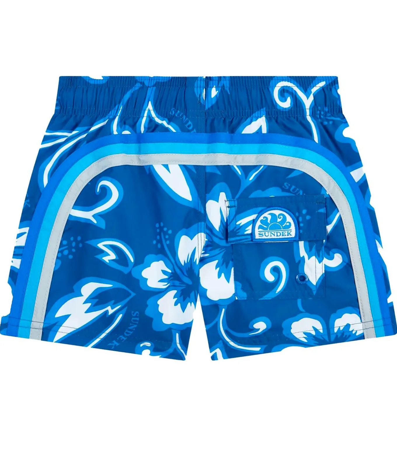 Kleur: Cosmo Samenstelling: 60% polyester, 40% gerecycled polyester Repreve® Lengte: Kort Pasvorm: Normaal Sluiting: Trekkoord in de taille Details: Kort badpak met SK23–print en de iconische Sundek–regenboog op de rug. Elastische taille met verstelbaar trekkoord, lichtgewicht materiaal gemaakt van gerecyclede plastic flessen. Buitenbeenlengte: 35 cm (maat M) Duurzaamheid: Gemaakt van Repreve®–materiaal van gerecyclede plastic flessen Gebruik: Ideaal voor een dagje strand, watersporten of gewoon stijlvol genieten van de zon
