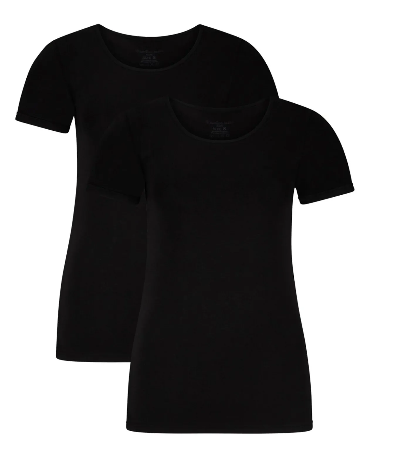 2 shirts met ronde hals van het merk Bamboo basics gemaakt van zachte single jersey met viscose (gemaakt van bamboepulp) voor langdurig comfort. Ademend, antibacterieel en elastisch.