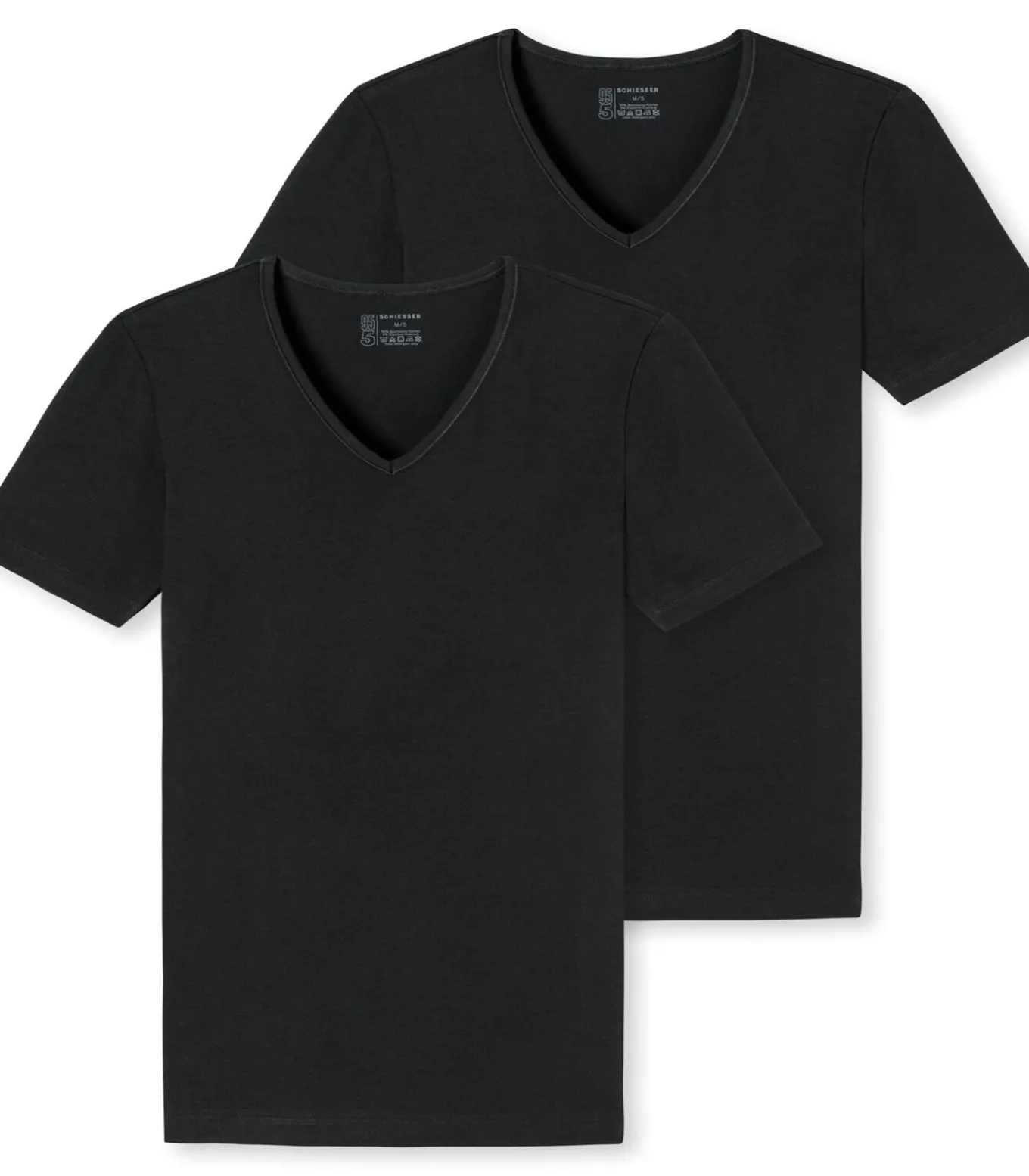 2 zwarte T–shirts met diepe V–hals van Schiesser in een voordeelpack