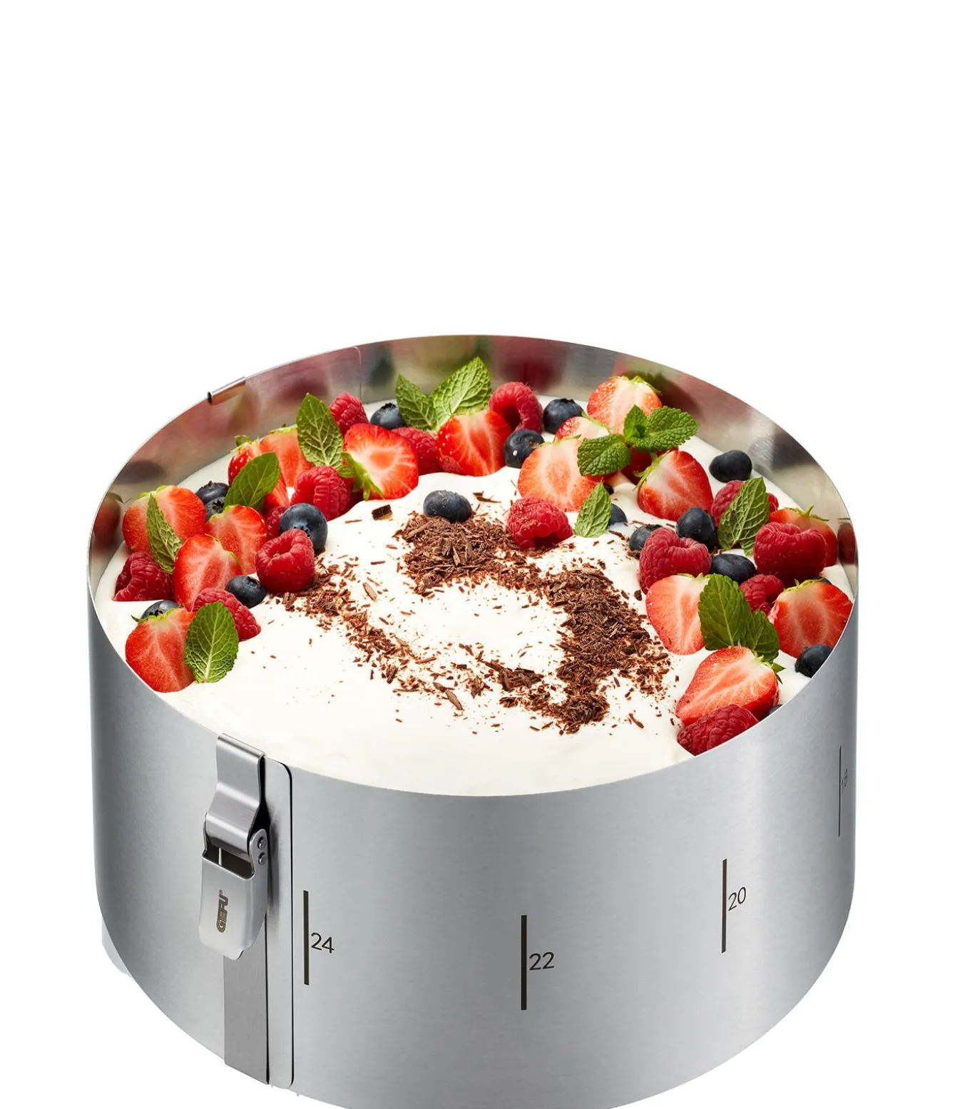 • traploos instelbaar voor gebak en taarten met Ø 16 cm tot 30 cm• gepatenteerde veiligheidsclip fixeert de ring op de gewenste maat• gemakkelijk af te lezen schaal• hittebestendig tot 300°C• lager energieverbruik door kortere baktijd• kan volledig worden geopend voor reiniging