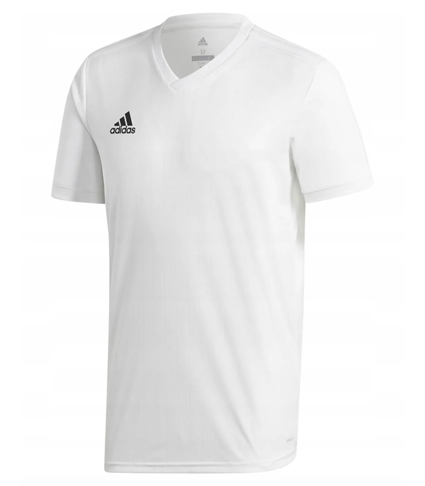 Adidas TABLE 18 Bal Wit is een 100% polyester T–shirt met zachte aanraking. Het heeft het bekende Adidas logo gedrukt en korte mouwen, met een V–hals. Dit T–shirt is uitgerust met Ademend, Climalite, vochtafvoerend en sneldroogende stoftechnologieën. Het past goed zowel bij jongens als meisjes en is gemonteerd voor een goede passing. De grootte 6 jaar kan pas bij een lengte van 24 inch, terwijl de grootte 8 jaar een lengte van 25 inch toelaat.