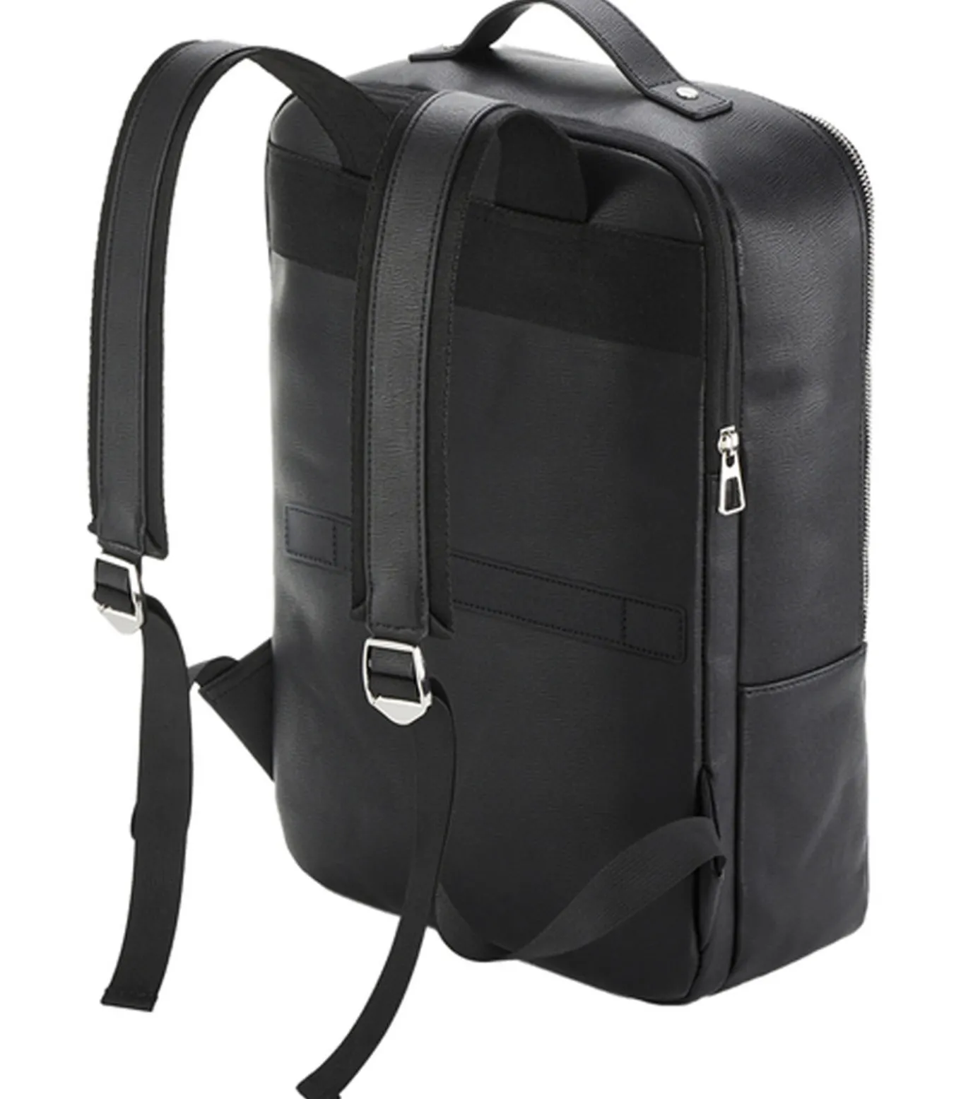 Quadra’s TAILORED LUXE zwarte rugzak biedt luxe en eenvoudige stijl in één keer. Het exterieur is gemaakt van 100% leer–look PU, terwijl het binnengedeelte opnieuw bewerkte polyester bestaat. De zak heeft een hoogte van 40cm en een breedte van 28,5cm en is 9,5cm lang. Deze rugzak beschikt over één voorzak, ritssluiting en interne opslagruimte. Het hoofdcompartiment bevat een laptopcompartiment van 16 inch, handgreep, intern flessenhouder en bagageriem achteraan. Verder is er een afscheurlabel aanwezig. De zijde is eenvoudig ontwerpt en geplaatst in een polybag, met tweewegrits voor het verzekeren van de juiste bevestiging.