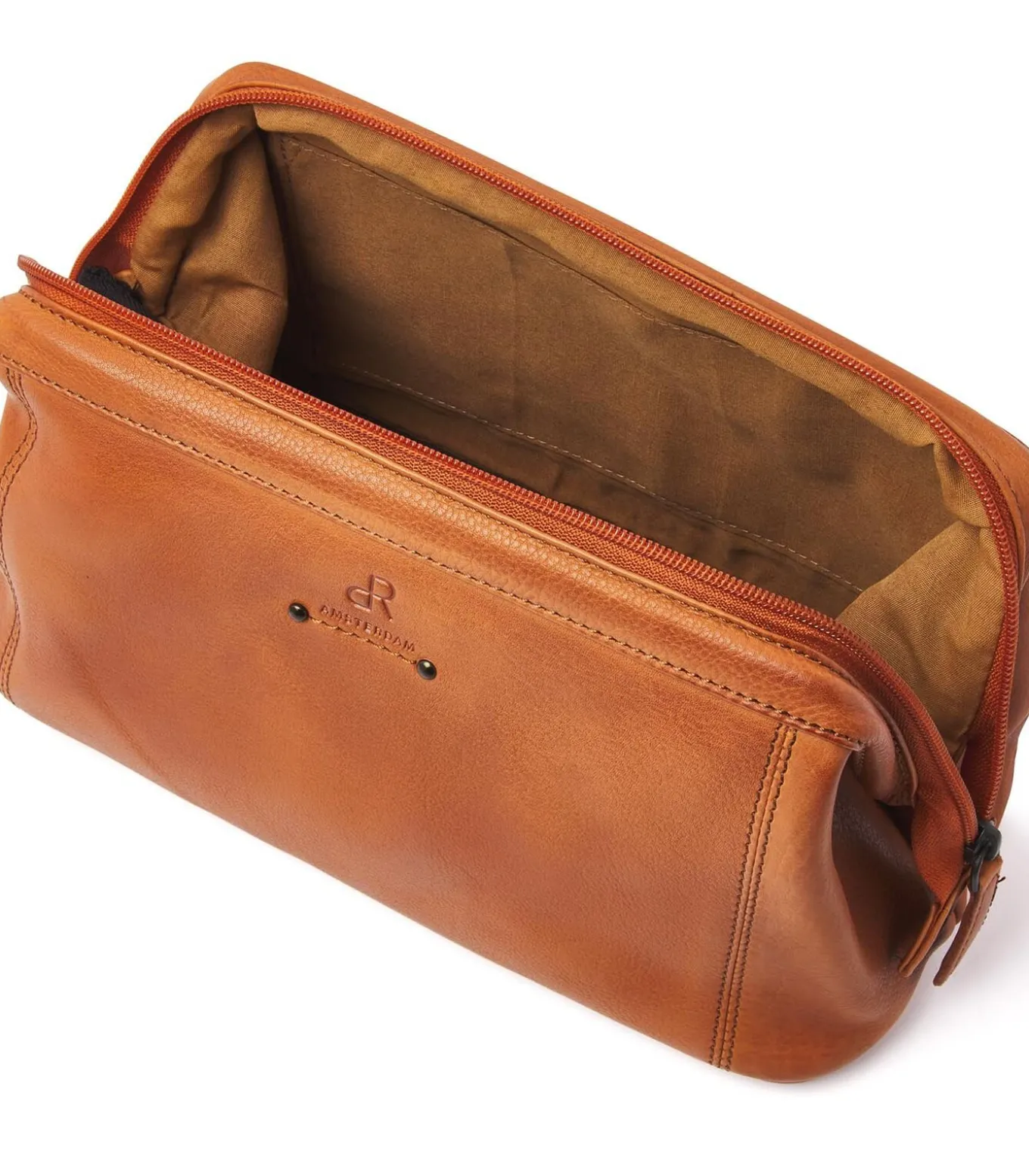 Deze mooie toilettas is gemaakt van zacht rundleder, wat hem erg fijn in gebruik maakt. Het perfecte artikel om mee te nemen tijdens een weekendje weg of je vakantie. De tas wordt veilig afgesloten met een rits aan de bovenzijde en beschikt over een beugel waardoor je deze erg ver open kunt zetten. Aan de binnenkant is een groot opbergvak, maar aan de zijkanten nog twee steekvakken voor kleinere spullen. Hierdoor heb je alles makkelijk en overzichtelijk bij.