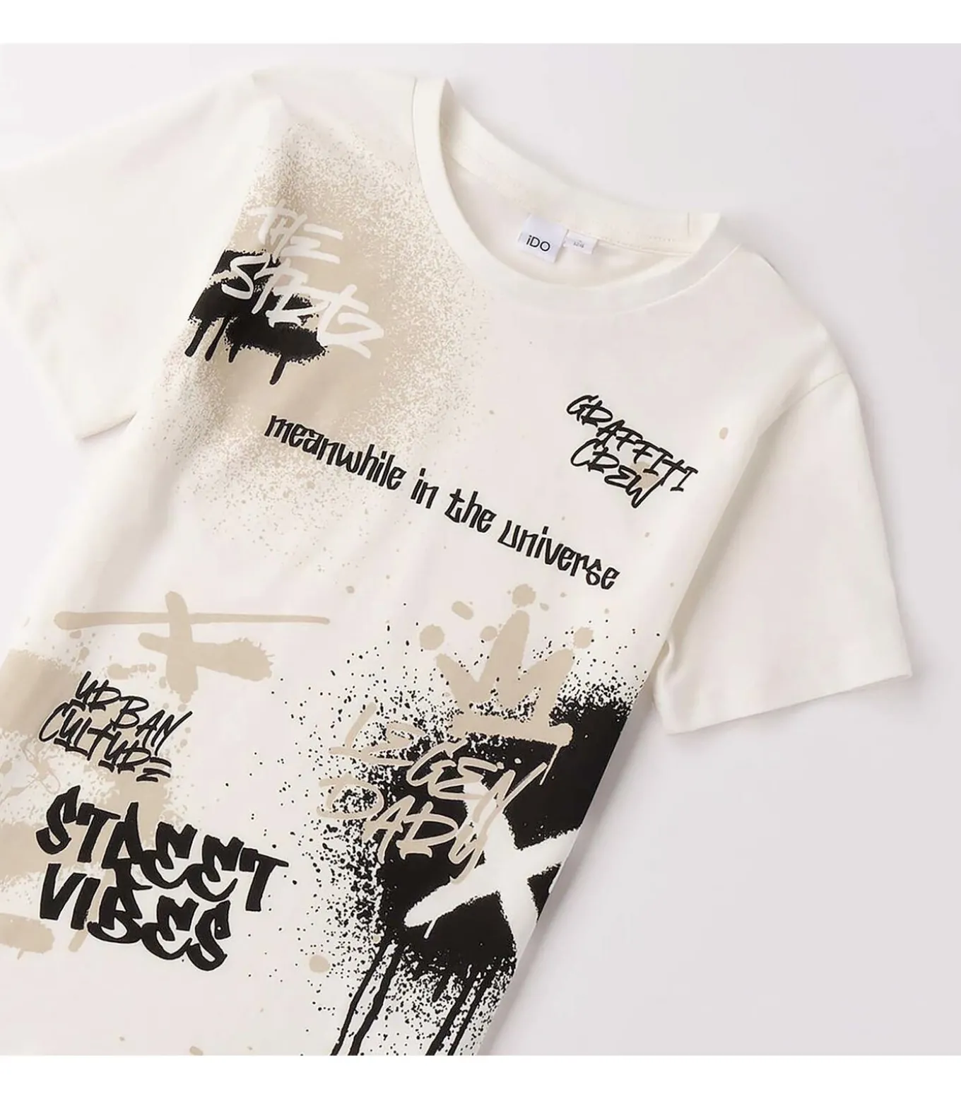 Kleur: gebroken wit. Samenstelling: 100% katoen. Mouwen: kort. Details: T–shirt van puur katoenen jersey met prints met een urban thema voor een dynamische en moderne look. Gebruik: perfect voor school en vrije tijd, ideaal voor het creëren van casual outfits met een metropolitan stijl.