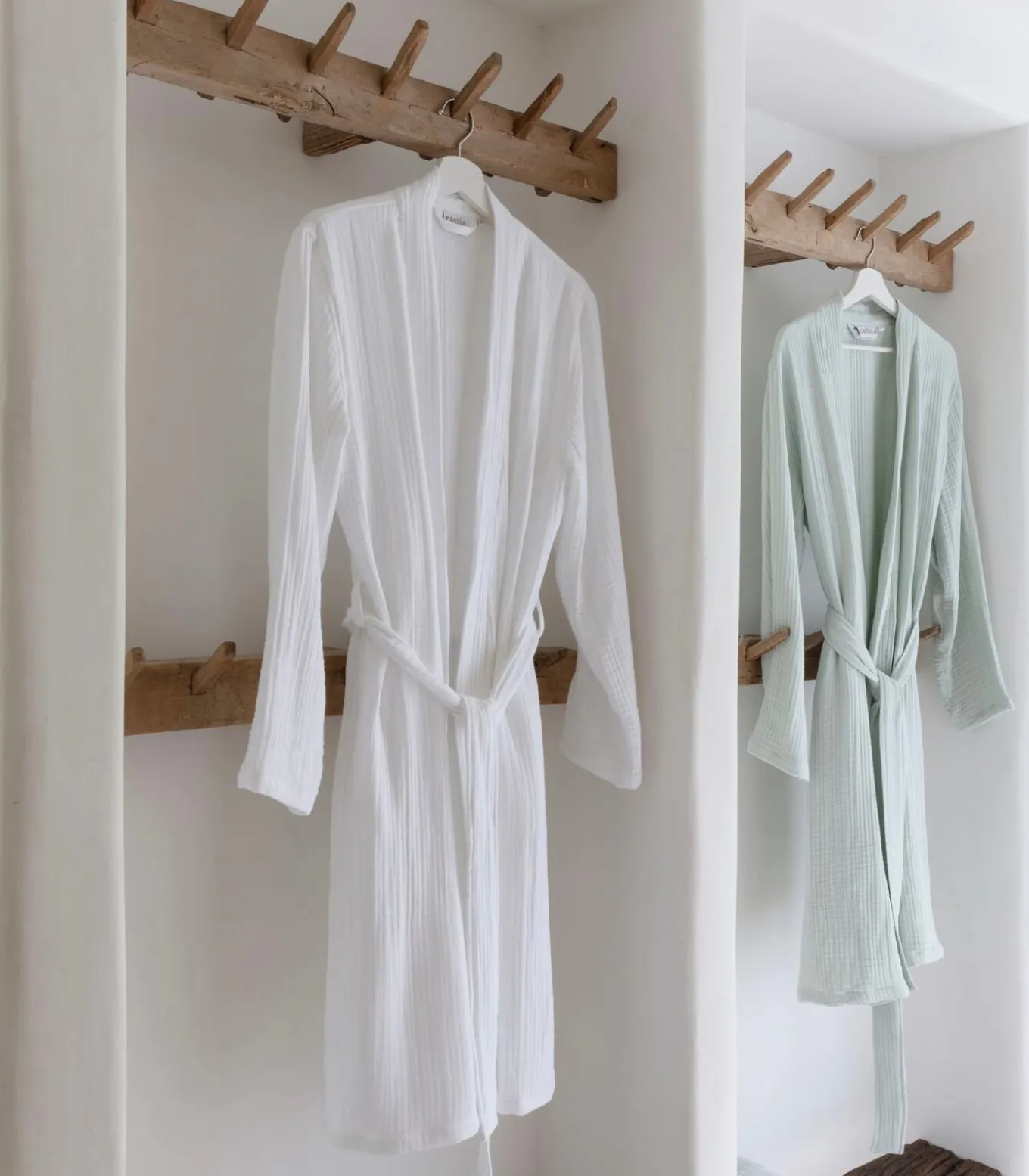 – Droger: de badjas mag in de droger, maar krimpt dan nog 5%. Dit is eigen aan de stof