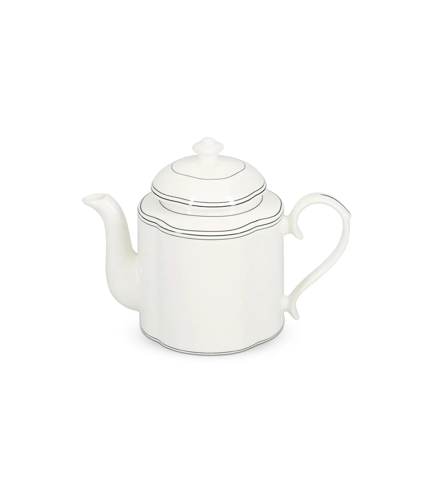 Odette – een verfijnd porseleinen servies dat de tijdloze charme van een Parijse bistro uitstraalt. Het zuiver witte design met een elegante zwarte rand ademt pure klasse en brengt de sfeer van intieme diners en charmante brasserieën tot leven. Met Odette haal je moeiteloos die verfijnde bistro–allure in huis: klassiek van aard, maar helemaal van nu.