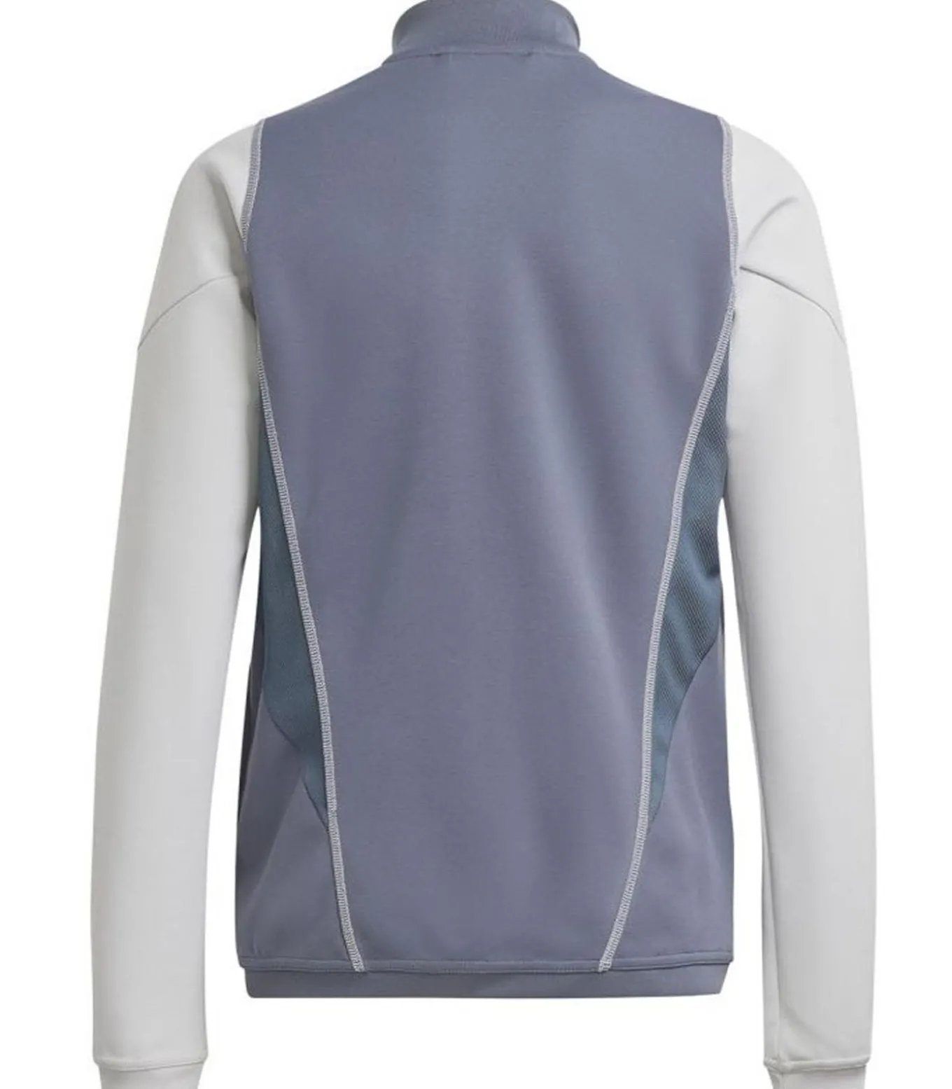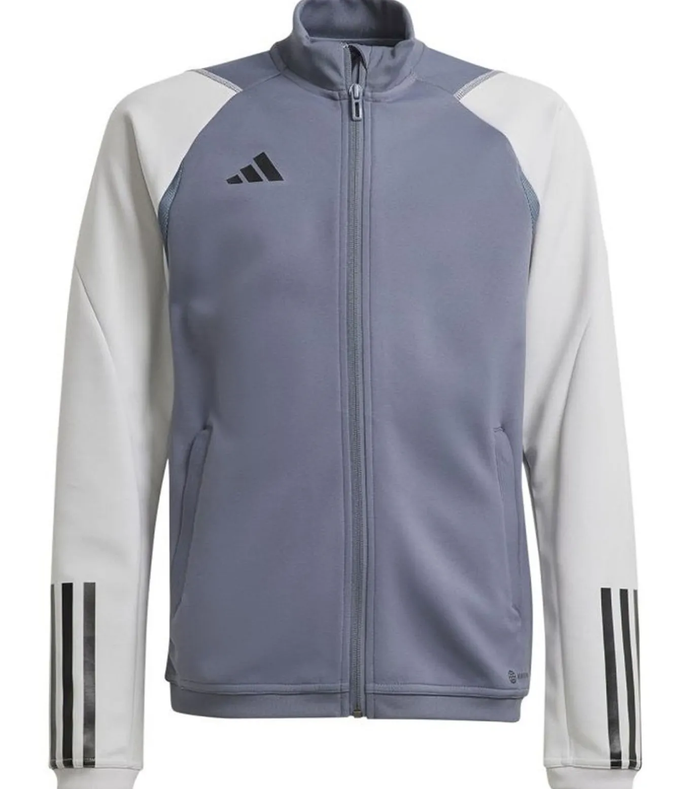 Adidas TIRO 23 COMPETITION Jasje – Grijs gemaakt van 100% hergebruikbaar polyester. Het ontwerp van dit jasje is gekenmerkt door contrasterende strepen en het logo van Adidas. De stoftechnologie die toegepast is, is Aeroready. Dit jasje heeft een kinbescherming en een rugpanel van gas. Er zijn contrastende mouwen en lange mouwen toegepast. Het manchet is elastisch. Het halslijn heeft een staande kraag. De maat is gemontreerd en de vastheid is verzekerd door volledige ritssluitingen. Verder heeft dit jasje elastische zoom en is het geschikt voor training. Dit jasje is geschikt voor kinderen van 7–8 jaar (25 in.), 9–10 jaar (28 in.), 11–12 jaar (30,5 in.) en 13–14 jaar (34 in.).