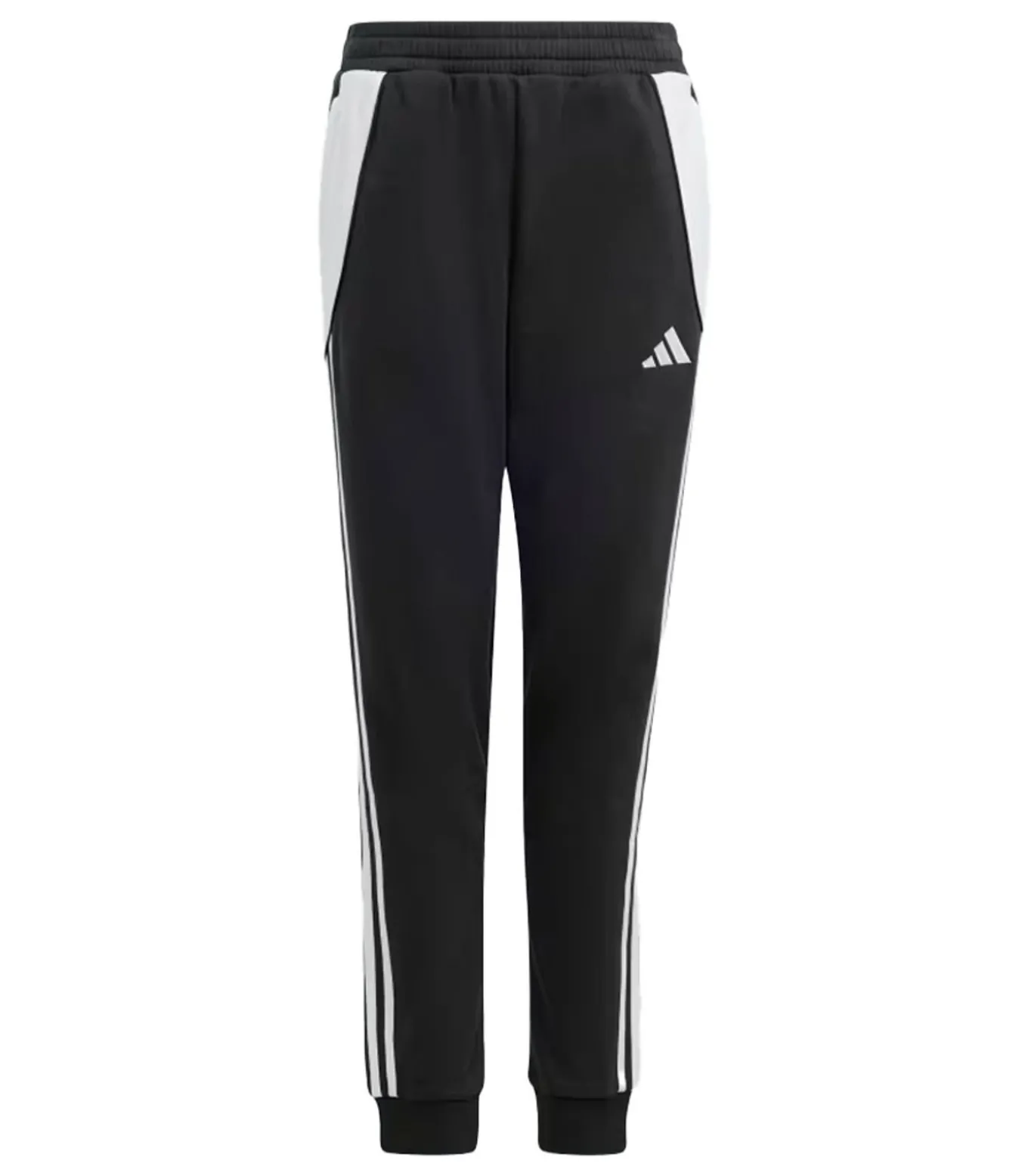 Adidas–merkproduct TIRO 24 – joggingbroek in zwart met de volgende kenmerken: Het product bestaat uit 70% katoen en 30% polyester. Het ontwerp van het broek is voorzien van een contraststreep en het logo van de merknaam. De stof heeft een ademend en duurzaam technologie. Het broek bezit twee zijzakken met een verborgen ritse. Het aantalmaat is verstelbaar, met elastiek en koordje. Het product is geschikt voor regelmatig gebruik. De zoom van het broek is elastisch en geribd.