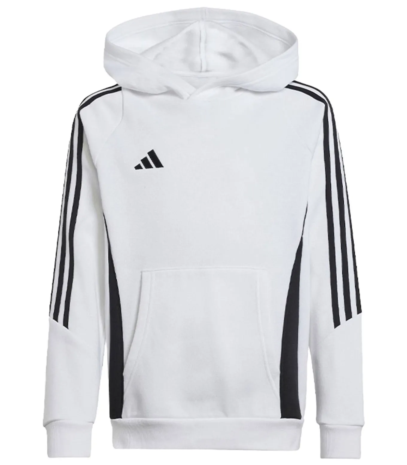 Adidas TIRO 24 – Zwarte kleding met opgetild kap, gemaakt van 70% katoen en 30% hergebruikte polyester. Het materiaal biedt een zachte aanraking, het ontwerp is eenvoudig en modern. De zakken zijn elastisch en geweven. Het kapje heeft twee panelen en is opgerold. De manchetten zijn elastisch en stijf. Het kraagje van de trui is kapitein–stijl. Het heeft langarmige mouwen. De trui is geschikt voor regelmatig gebruik en heeft één kangoeroe zak. Het wordt vastgehouden door een trek aan de achterkant. De lengtes variëren van 25 in voor kinderen tussen 7–8 jaar, 24 in voor kinderen tussen 5–6 jaar, 31 in voor kinderen tussen 11–12 jaar, 34 in voor kinderen tussen 13–14 jaar en 28 in voor kinderen tussen 9–10 jaar.