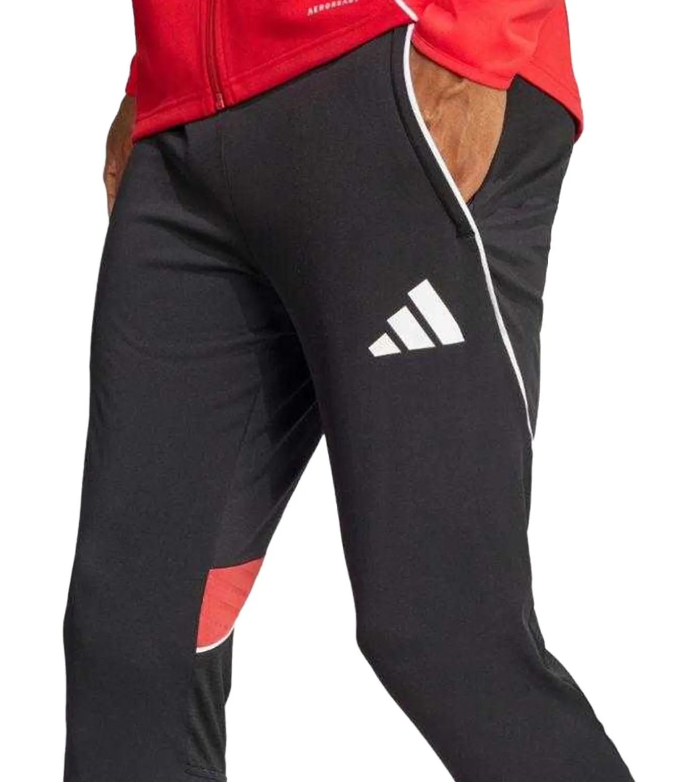Adidas’ TIRO 25 zwart joggingbroek is gemaakt van 100% hergebruikbaar polyester en telt een gebreide stofstructuur. Het ontwerp kenmerkt zich door contraststrepen en het logo. Deze broek heeft de Aeroready en sneldrogende stoftechnologie, verder wordt er een rits toegepast aan de enkels. Het biedt 2 zijzakken en rits zakken. De taille is aangepast met elastiek en koordje. Dit joggingbroek is vooral geschikt voor slankere lichamen.