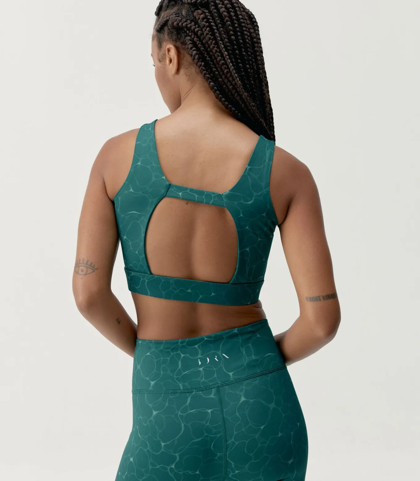 Sporttop met medium ondersteuning. “Skin_Move” lichtgewicht stof die bestand is tegen al je bewegingen. Opening aan de achterkant met een elegant bandje voor meer ademend vermogen. Print op geverfde stof. Volledige kleur volledige dekking. Inclusief verwijderbare pads. PrestatietechnologieDuurzame vezels 4–weg stretchstof Hoge zonnebrandcrèmeSneldrogend Zacht aanvoelend Antistatisch Antibacterieel Uitneembare pads