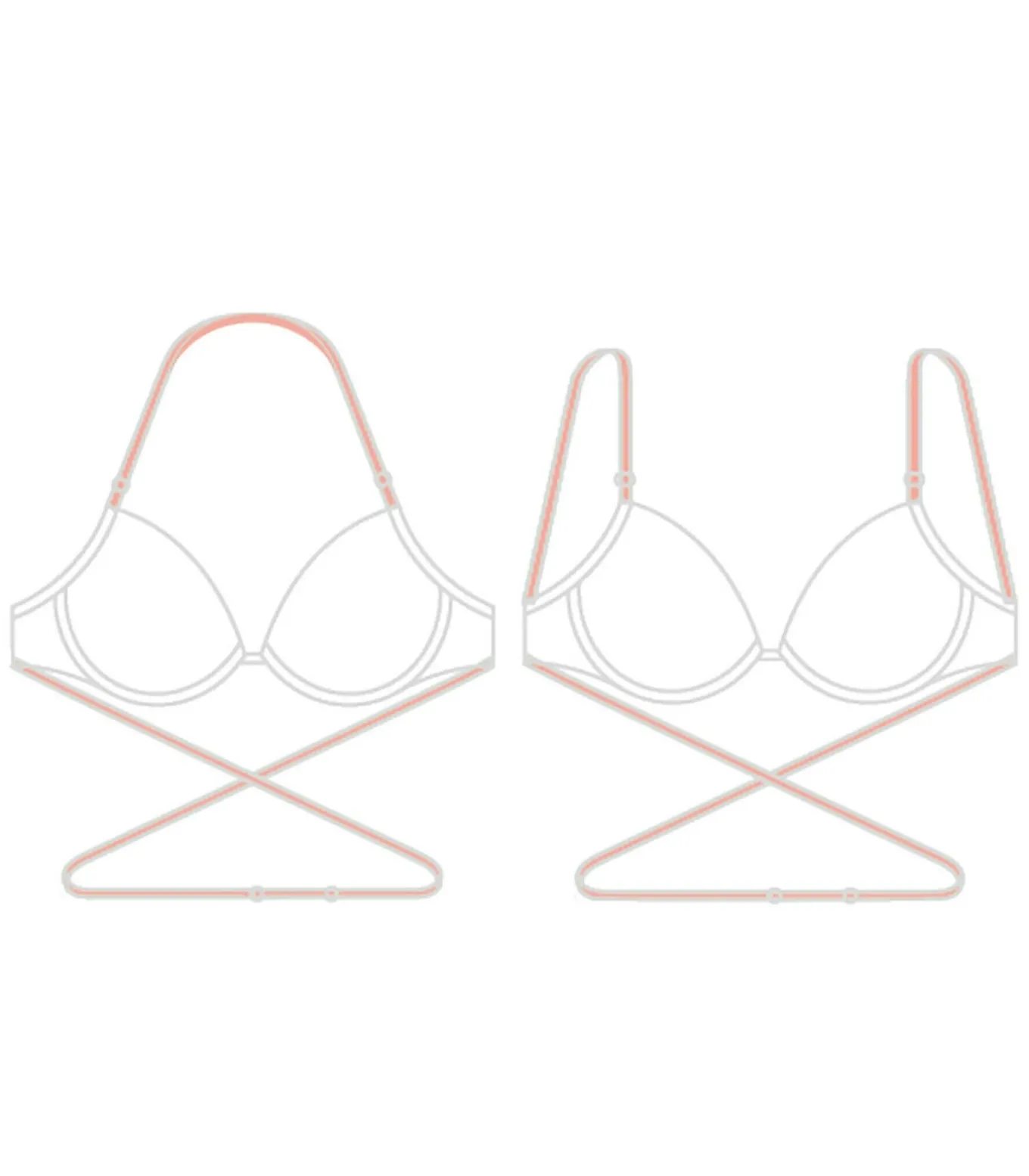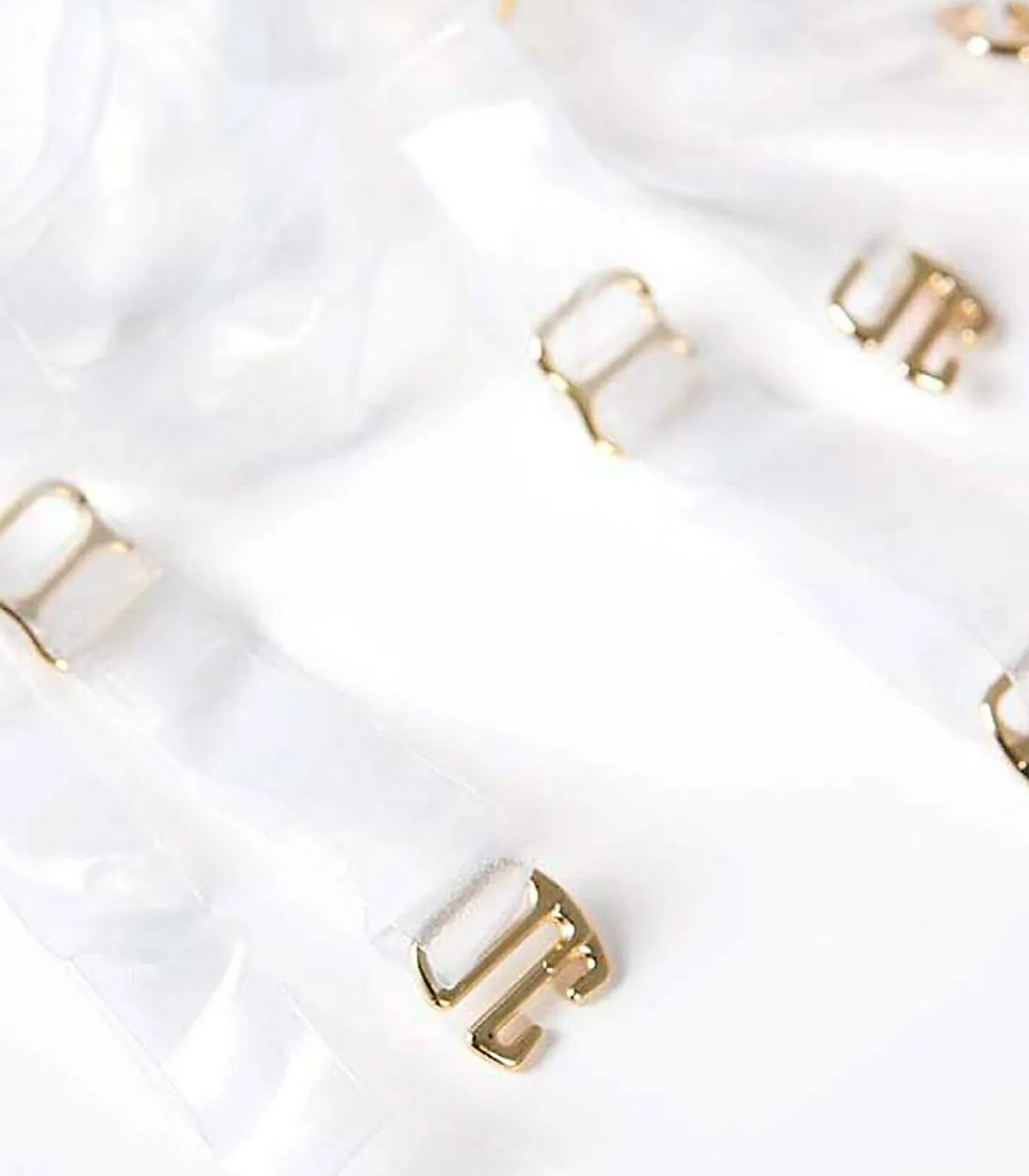 Deze set bh bandjes bestaat uit 5 verstelbare transparante bh bandjes die onzichtbaar over uw multi–positie bh passen. De haken en regelaars zijn goudkleurig.