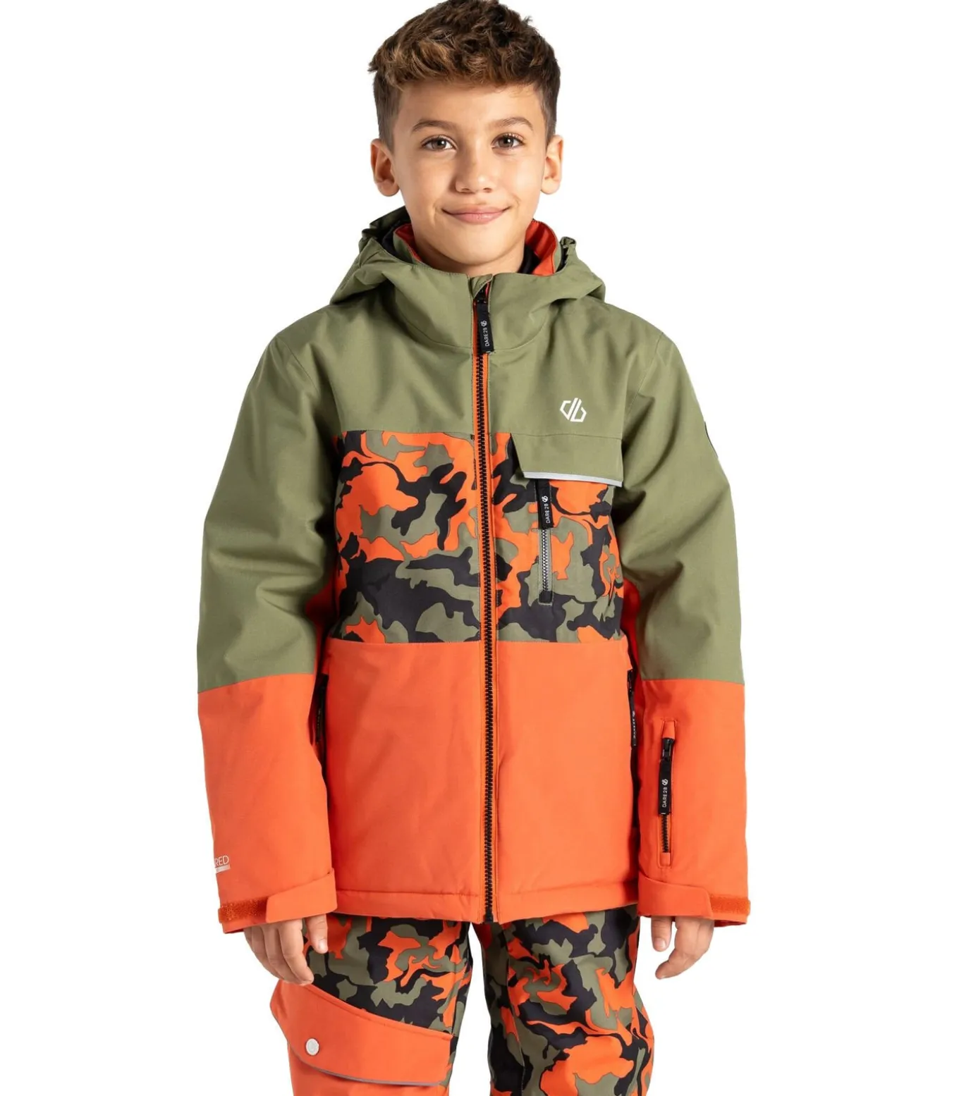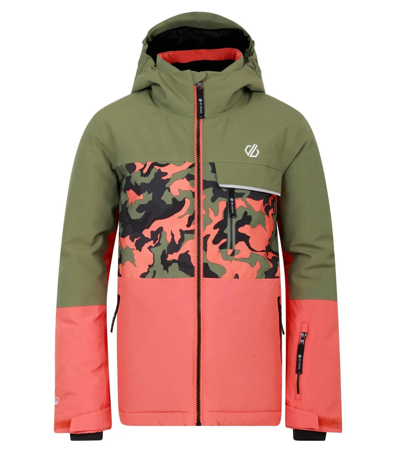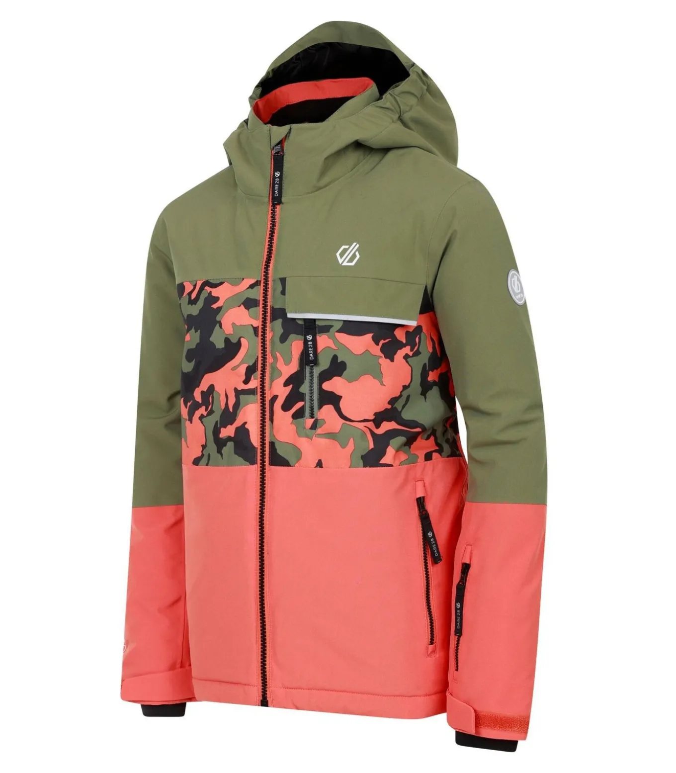 Het Dare 2B TRAVERSE II jasje in koraal is gemaakt van hergebruikt polyester en heeft een kraag, rekende stof, verschillende uitvoeringen zoals camouflage, kleurenblok en logo. De stof is voorzien van de ARED 30/30–technologie, is ademend, warm, PFC–vrij, PFOA–vrij, PFOS–vrij, douchebestendig, waterafstotend en waterdicht. Het manchet is verstelbaar met stretch aan de binnenzijde en is uitgerust met een lusje met drukknoopsluiting. De halslijn is in captain–stijl. Het jasje heeft mouwen van lengte, gewatteerde, reflecterende details, gekartelde rugpant, sneeuwrok en getapete naad. De kap is elastisch en gegroeid op de kop. Dit jasje beschikt over een skipazaak, één borstzak, twee onderzakken, ritssluiting, één binnenzak en een opslagzak. Het heeft volledige ritssluiting. Opmerking: Shockcord Hem is geschikt voor kinderen van 7 jaar en ouder. De afmetingen zijn als volgt: 5–6 jaar (24 in), 13 jaar (32 in), 7–8 jaar (26 in), 9–10 jaar (28,5 in), 15–16 jaar (36 in) en 14 jaar (33 in).