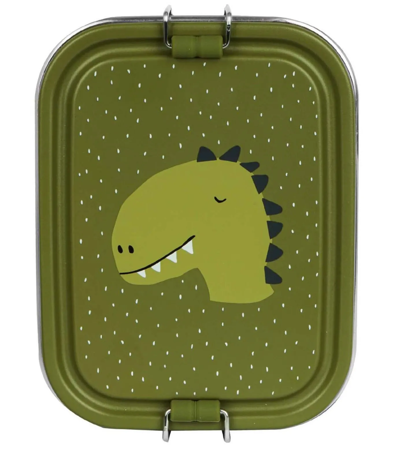 Trixie Brooddoos klein – Mr. DinoHeerlijk lunchen met onze vrolijke dierenvrienden!Deze duurzame brooddoos sluit mooi aan bij ons assortiment rugzakken en drinkflessen. Ze zijn verkrijgbaar in dezelfde kleuren en zijn voorzien van onze leuke dierenvriendjes op het deksel.De brooddoos is gemakkelijk te openen en te sluiten, dus kinderen kunnen dit gemakkelijk zelf doen. Er passen gemakkelijk 4 heerlijke boterhammen in. De grote brooddoos heeft een vaste verdeling, zodat je je kleintje kan verwennen met een extra gezonde snack.Deze duurzame brooddoos is volledig gemaakt van roestvrij staal. Dit sterke materiaal bevat geen schadelijke chemicaliën. Het is ideaal voor het bewaren van voedsel omdat het geen kleur, smaak of geur absorbeert.Materiaal:100% roestvrij staalWasvoorschriftenmet de hand reinigen met warm zeepwater