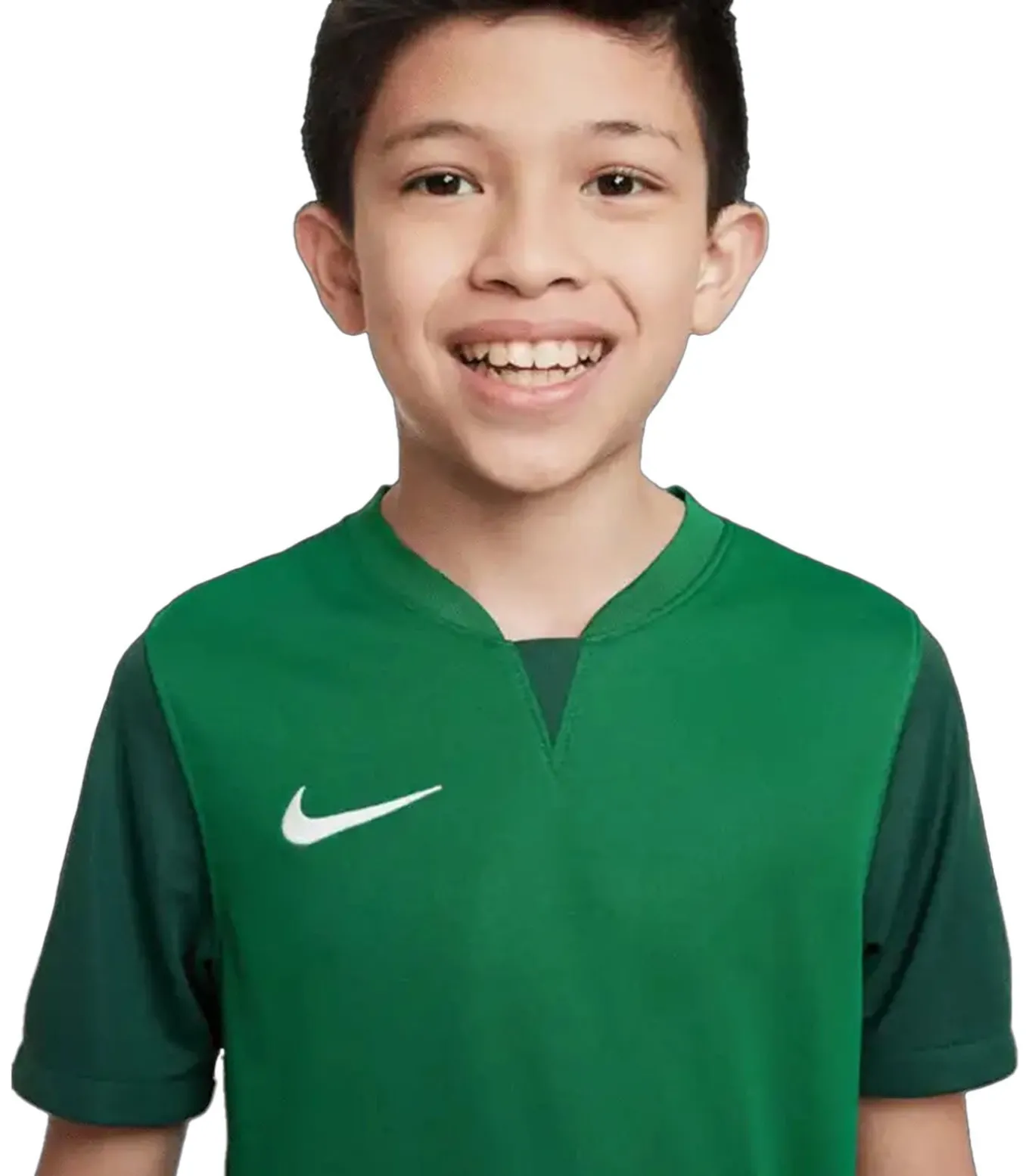 Nike Trophy V–T–shirt Groen – dit is een T–shirt van de merk Nike met een uniek ontwerp en comfortabele pasvorm. Het is gemaakt van polyesterstoffen, waardoor het schoon te wassen is en bestand tegen veel gebruik. Het ontwerp bevat de beroemde ‘Swoosh’–logo van Nike op de linkerborst. De T–shirt heeft een honkbalkraag–halslijn voor een stijlvol uiterlijk en een korte mouw om een moderne look te creëren. Deze T–shirt is standaard in passen, met een pasmatige opgave van 29,5 inch voor kinderen tussen 10 en 12 jaar, 32 inch voor kinderen tussen 12 en 13 jaar en 35 inch voor kinderen tussen 13 en 15 jaar.