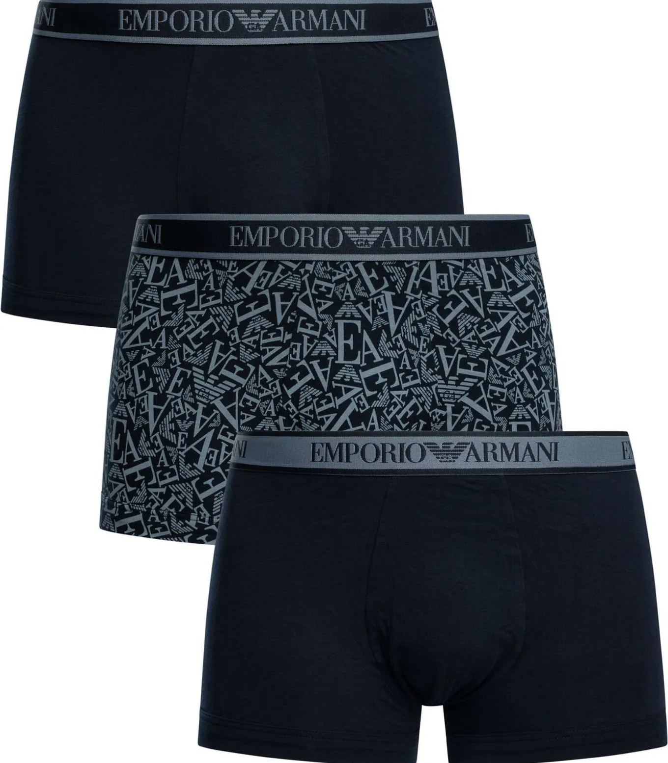 De Emporio Armani 3–pack zwembroek in blauw/logopatroon/blauw combineert comfort en stijl in één essentieel pakket. Deze zwembroek is gemaakt van stretchkatoen en biedt flexibiliteit en comfort, de hele dag door. De elastische tailleband met merklogo zorgt voor een veilige en verstelbare pasvorm, terwijl het zachte materiaal ademend is. Het logopatroon voegt een kenmerkende branding toe en geeft deze zwembroek een stijlvolle afwerking. Ideaal voor dagelijks gebruik, deze zwembroek biedt zowel luxe als functionaliteit, waardoor hij een must–have is voor je essentials–lade. Let op: Dit artikel kan om hygiënische redenen niet worden geretourneerd of geruild.