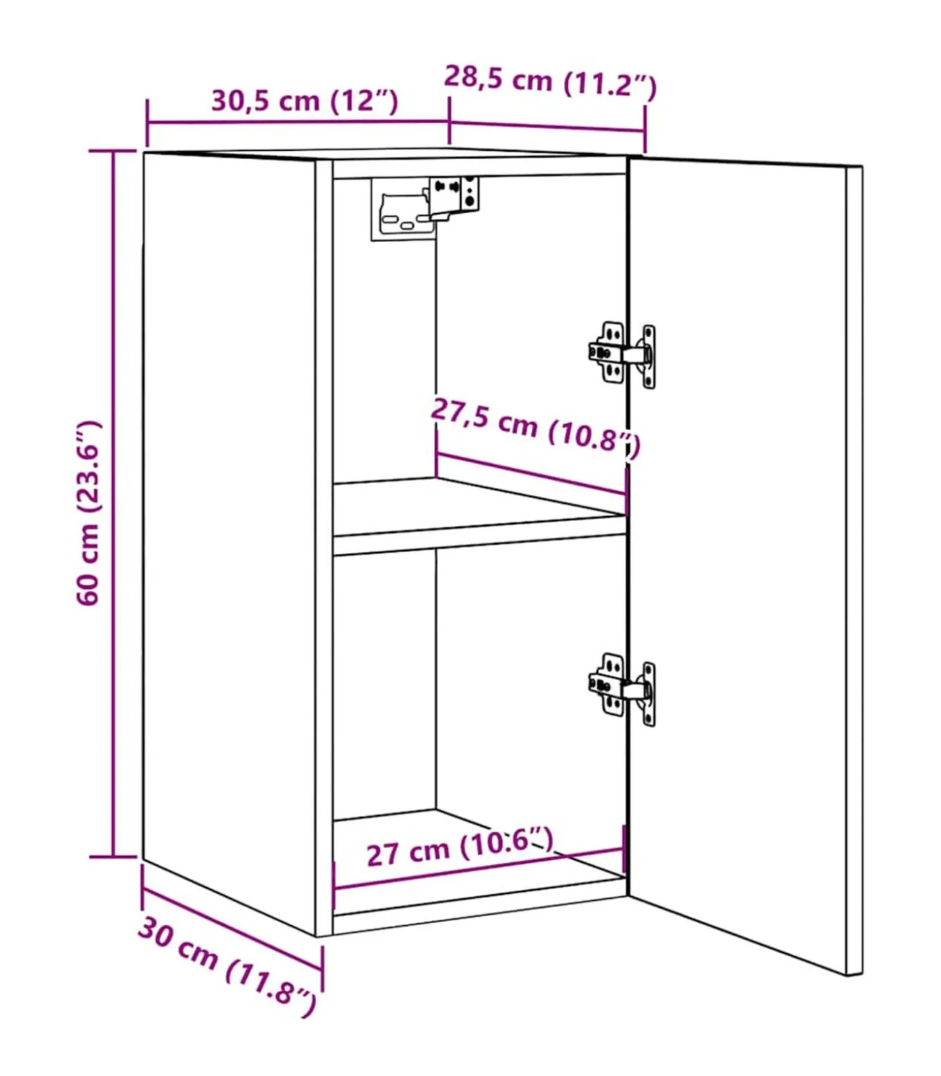 Afmetingen: 30,5 x 30 x 60 cm (B x D x H)