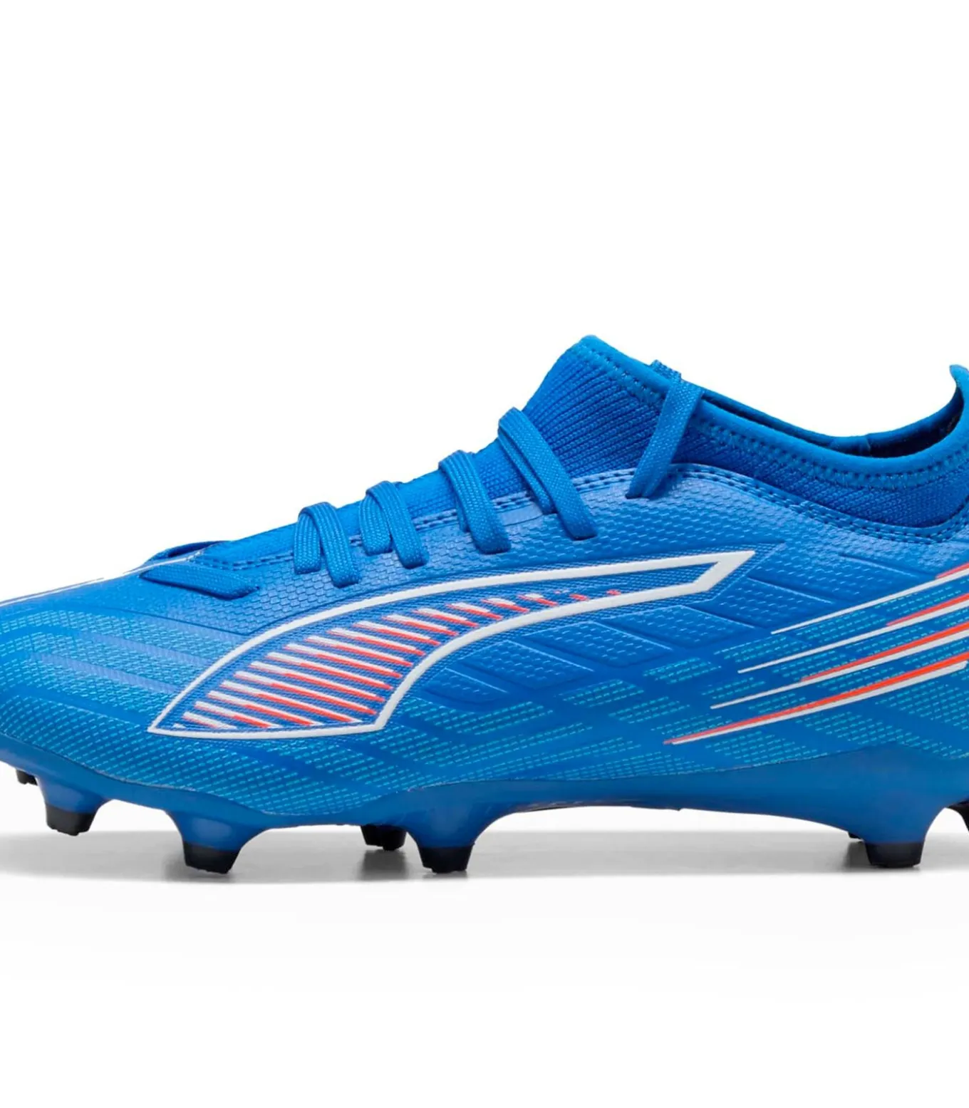 Kleur: Ultra Blue–PUMA White–Glowing Red. Sluiting: Veters. Voering: 60,60% textiel, 39,40% synthetisch. Bovenwerk: 77,93% synthetisch, 22,07% textiel; lichtgewicht mesh met GripControl–coating voor stevige balcontrole. Buitenzool: 100% synthetisch met SPEEDSYSTEM–technologie en FastTrax–noppen plus afgeronde noppen voor grip op stevige natuurlijke en kunstmatige oppervlakken. Binnenzool: 100% textiel. Pasvorm: Regular. Pitch: Stevige natuurlijke en kunstmatige oppervlakken. Details: Lichtgewicht ondersteunend chassis voor stabiliteit en snelle richtingsveranderingen; ronde neus; platte hak; PUMA–logo’s. Duurzaamheid: Bovenwerk gemaakt van minimaal 30% gerecyclede materialen. Gebruik: Perfect voor snelle jonge spelers die op zoek zijn naar multidirectionele grip en optimale balcontrole.