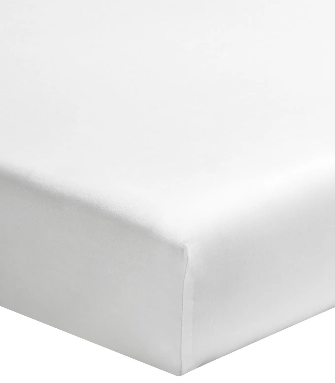 Het hoeslaken is effen en heeft een omslag met een hoogte van 32 centimeter.