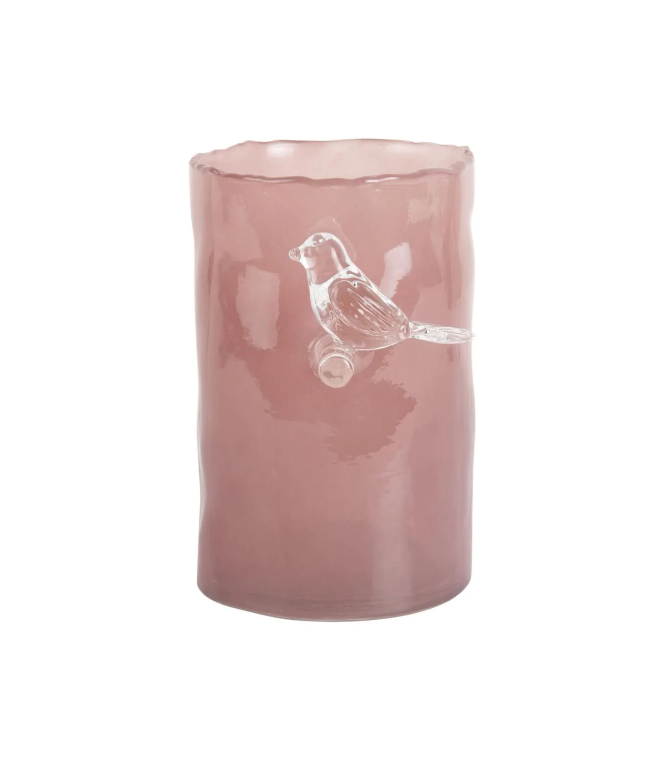 Vaas Bird On Branch – Zachtroze – 9.5×9.5x15cm