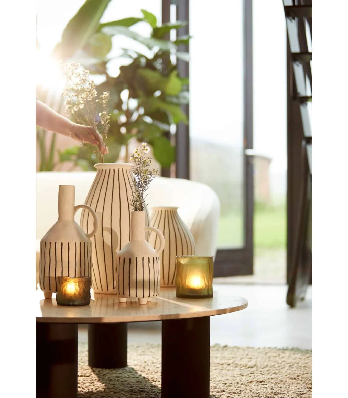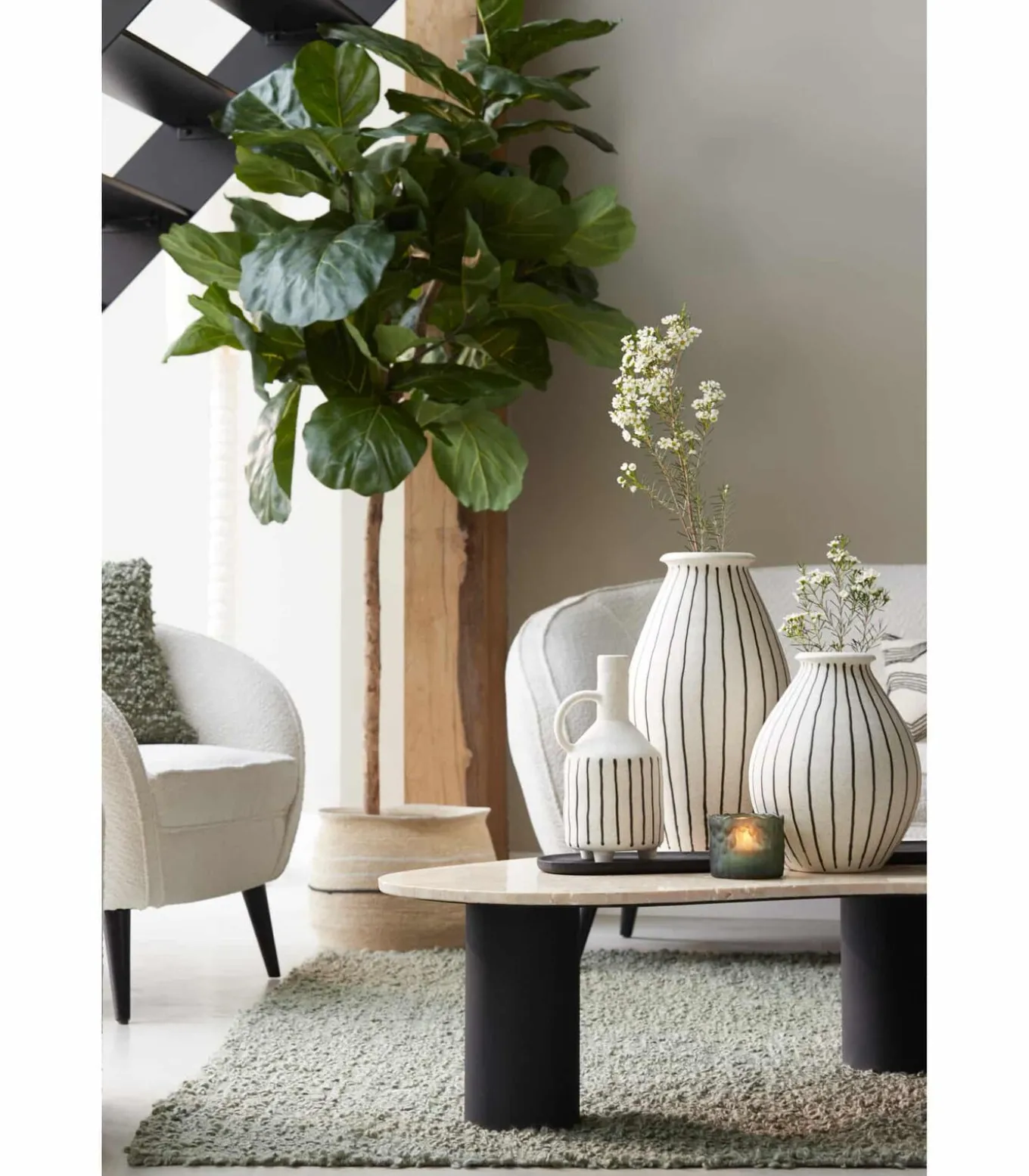 Breng een kunstzinnige flair in je interieur met de Diphu vaas van Light & Living. Deze keramieken vaas combineert een zachte crèmekleurige basis met handgeschilderde zwarte strepen, waardoor elk exemplaar uniek is. Met zijn elegante ellipsvorm en slanke hals is de vaas een stijlvolle blikvanger die zowel met als zonder bloemen een statement maakt. De vaas is vervaardigd uit hoogwaardig keramiek en heeft een matte afwerking die zorgt voor een natuurlijke uitstraling. De handgeschilderde zwarte strepen geven de vaas een artistiek karakter, waardoor hij perfect past in diverse interieurstijlen. Plaats de vaas op een dressoir, vensterbank of als middelpunt op de eettafel en laat je ruimte tot leven komen. De vaas heeft een diameter van 23,5 centimeter en is 43 centimeter hoog.