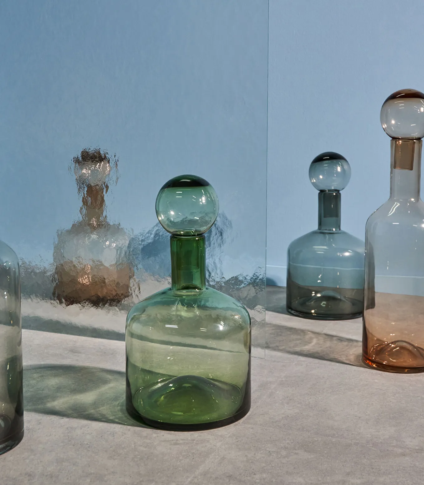 Geïnspireerd door de nieuwste designtrends is onze Fera collectie ontstaan. Met zijn unieke look kan je elke ruimte in je huis personaliseren. Fera is gemaakt van kristalglas en de kleuren zitten sterk verwerkt in het glas wat maakt dat ze niet kunnen verkleuren. Verkrijgbaar in het grijs, groen en amber.