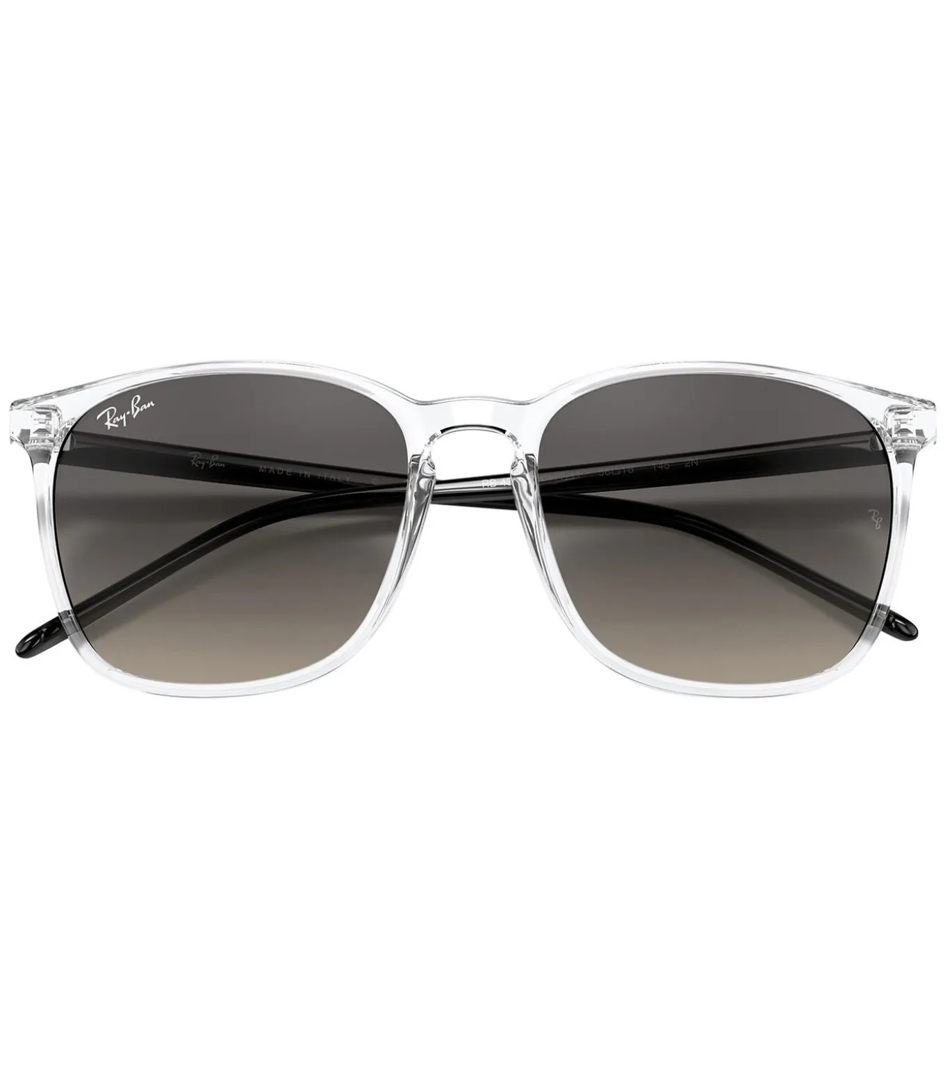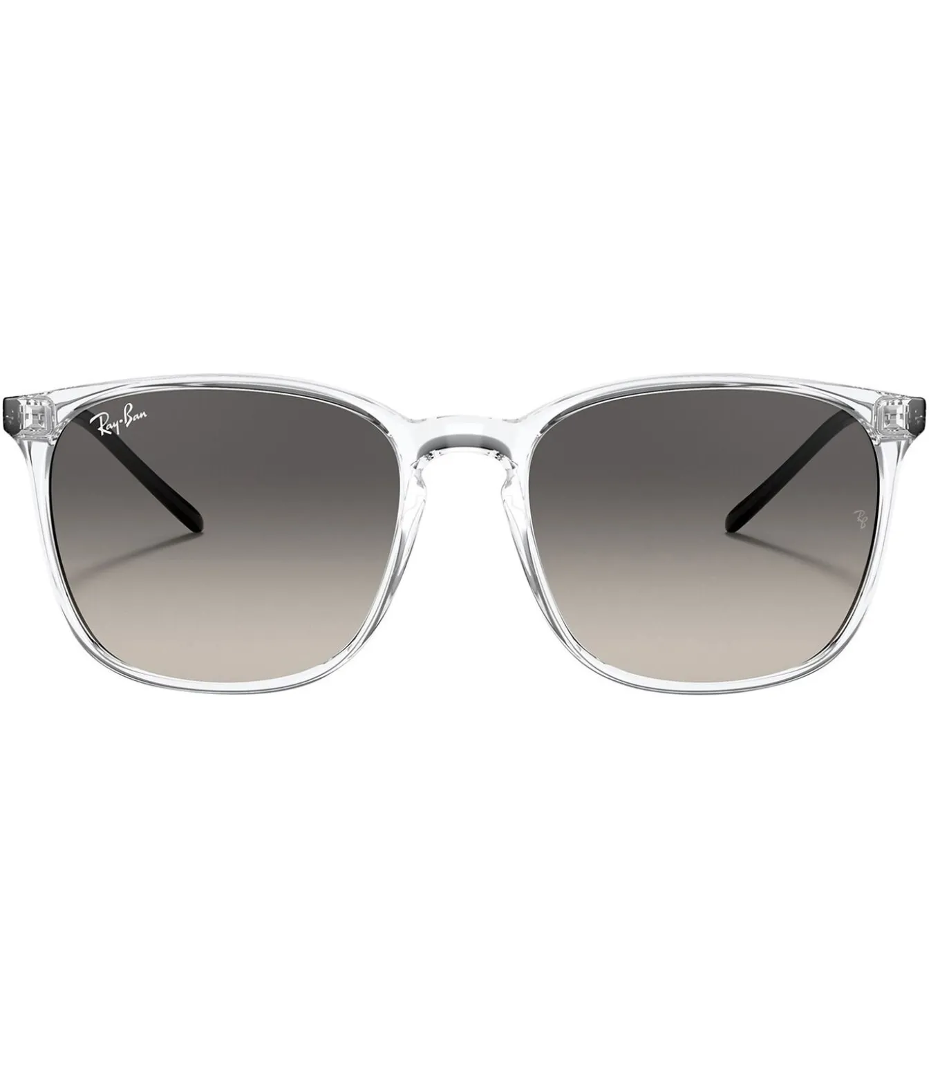 De vierkante transparante zonnebril van Ray–Ban wordt geleverd in de kleur Grey Gradient en heeft een gradiëntlens. Deze zonnebril is voorzien van een merk op het frame en de lens en wordt geleverd met een harde etui.