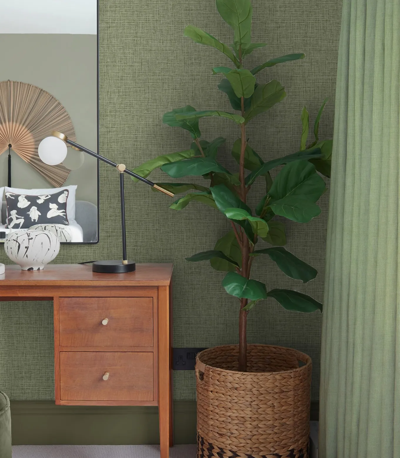 Deze Sanctuary–variant is uitgevoerd in een stijlvolle saliegroene kleurstelling en is een uitstekende keuze als je op zoek bent naar een effen behang. Omarm de saliegroene trend en combineer het met onze nieuwe verf in de kleur Saliegroen en een bijpassend rolgordijn.
