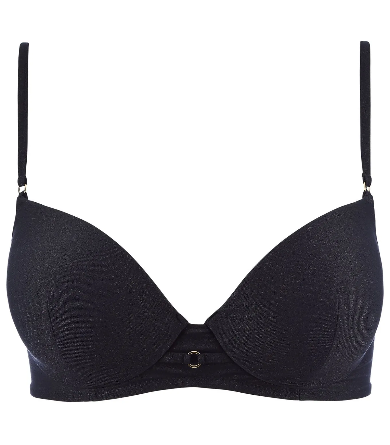 De Summer Glow plunge shell zwemkleding top, verkrijgbaar tot E cup, heeft een open en sexy halslijn, met een afnemend push–up effect op de grootste maten voor absoluut comfort en ondersteuning. De voorkant van de bh is volledig bedekt met een mesh dat fonkelt door een lurexdraad en bij het kruis wordt geaccentueerd door een gedurfde vetersluiting. De achterkant is versierd met dubbele bandjes die samen met de gouden sluiting de rug mooi accentueren.