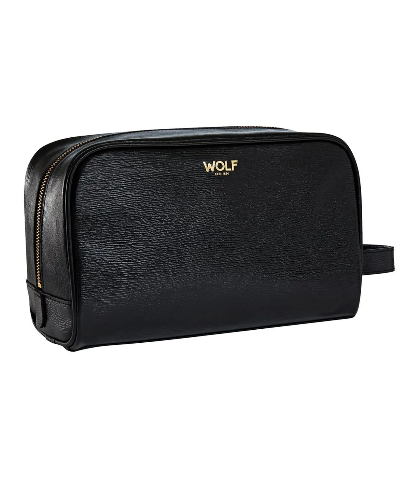 De ‘W’ collectie; strak, zwart, reliëfleder, met accenten van goud op lederen portemonnees, zakelijke accessoires en een toilettas. Zuivere verfijning komt voort uit een klassiek ontwerp met de kenmerkende aandacht voor detail van WOLF. Bewaar je toiletartikelen in stijl met de W Logo toilettas. Met een verfijnd ontwerp biedt deze ruime toilettas een buitenvak met ritssluiting, een binnenvak en een draaggreep. Deze tijdloze toilettas is het perfecte accessoire om mee te nemen op je toekomstige reizen.