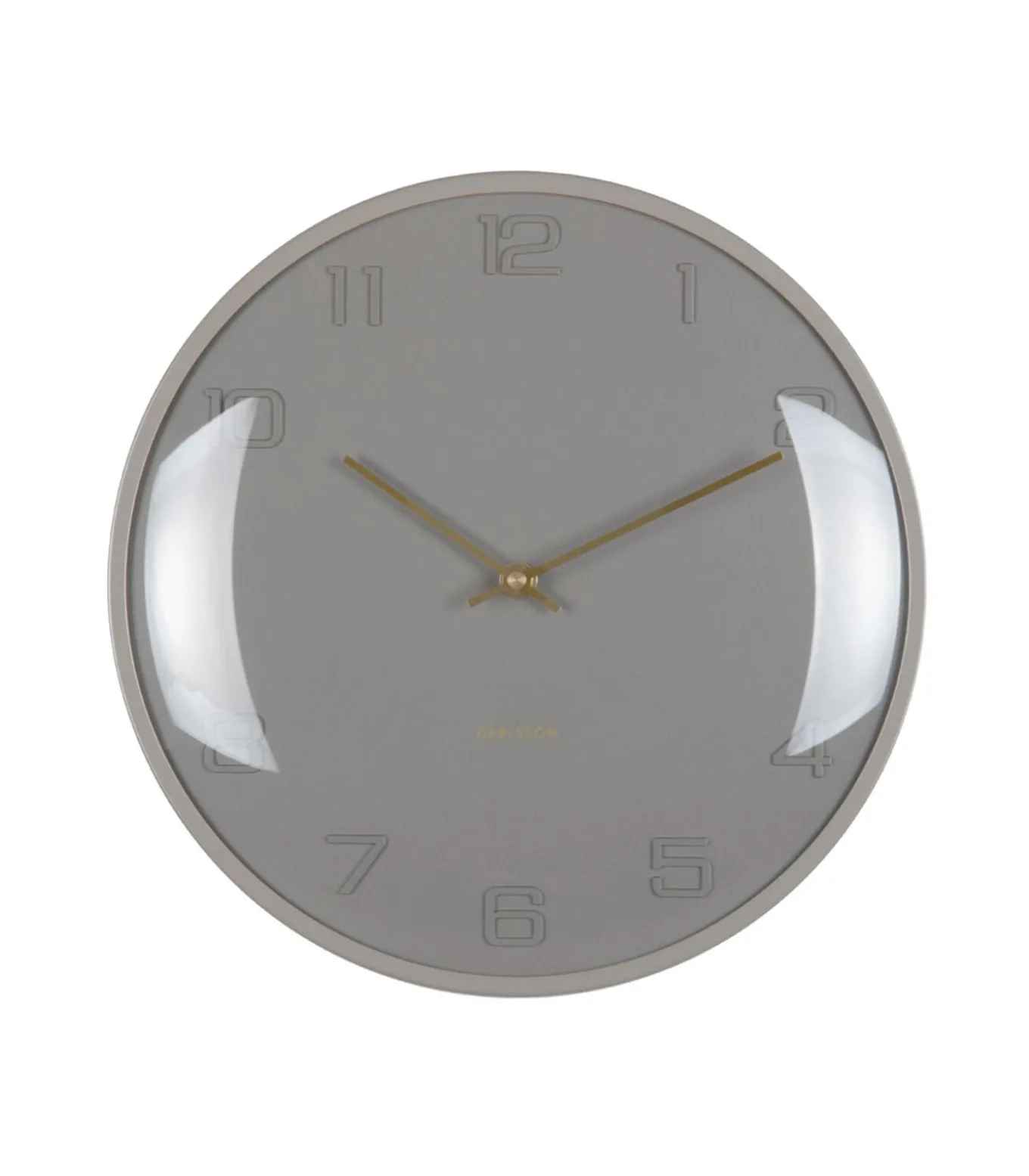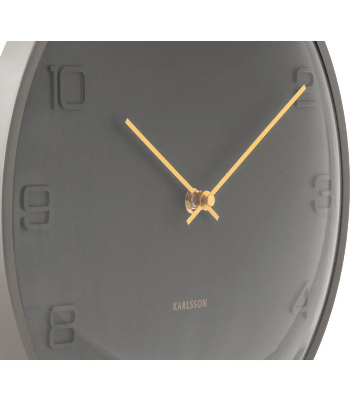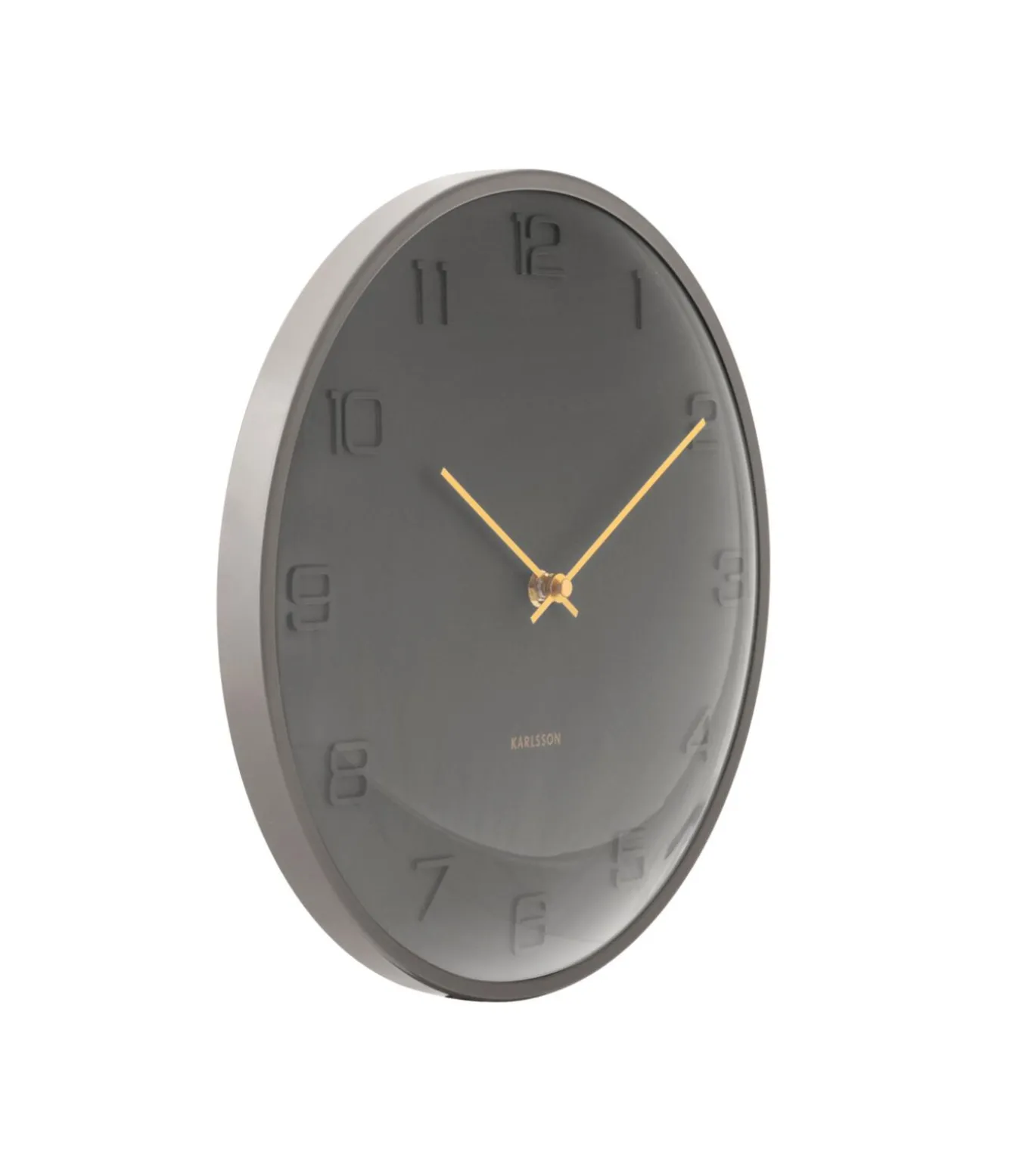 De Fuerte Dome van Karlsson is een compacte wandklok met karakter. De opstaande dome–vormige glasplaat en de reliëf cijfers zorgen voor diepte en een opvallend silhouet aan de muur. De slanke, goudkleurige wijzers geven het ontwerp een luxe afwerking. Dankzij de heldere lijnen en elegante afwerking past deze klok perfect in moderne interieurs met een warm randje. Een stijlvolle keuze in een compact formaat.