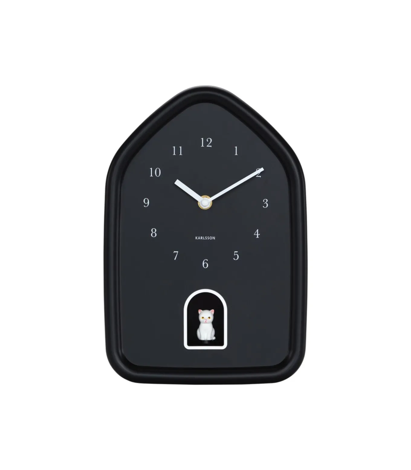 De Modern Kitty wandklok van Karlsson combineert eenvoud met een speels detail. Elk uur verschijnt er een schattig katje dat zacht miauwt. Het huisvormige design en de matte kleuren geven de klok een warme, moderne uitstraling. Perfect voor kattenfans en liefhebbers van strak design met een knipoog.